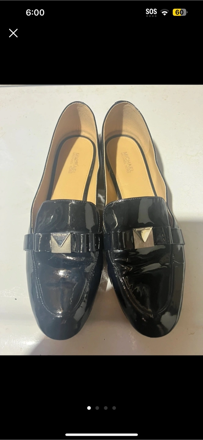 Selling a pair of Michael Kors loafers in black patent leather. They're a size 8M and have a stylish look. These are perfect for adding a touch of class to any outfit!