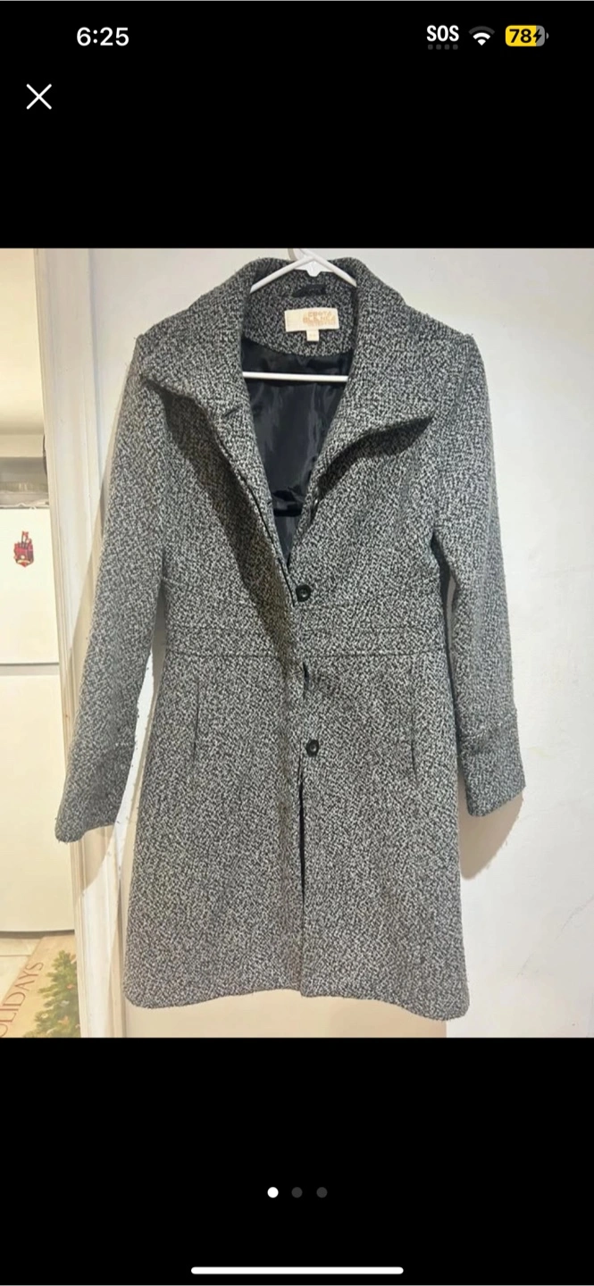 Selling a stylish ESTA VEZ BLANCA outerwear coat in size M! It's a lovely grey and black colour and in great condition. Perfect for keeping warm and looking chic!