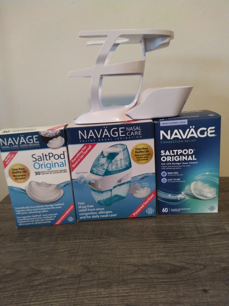 I'm selling a Navage Nasal Care system. It's a saline nasal irrigation system that includes the nose cleaner and some saltpods. It's designed to provide drug-free relief from sinus congestion, allergies, and for daily nasal care. The Saltpod Original capsules clean and moisturize the nose with pure, refreshing saline