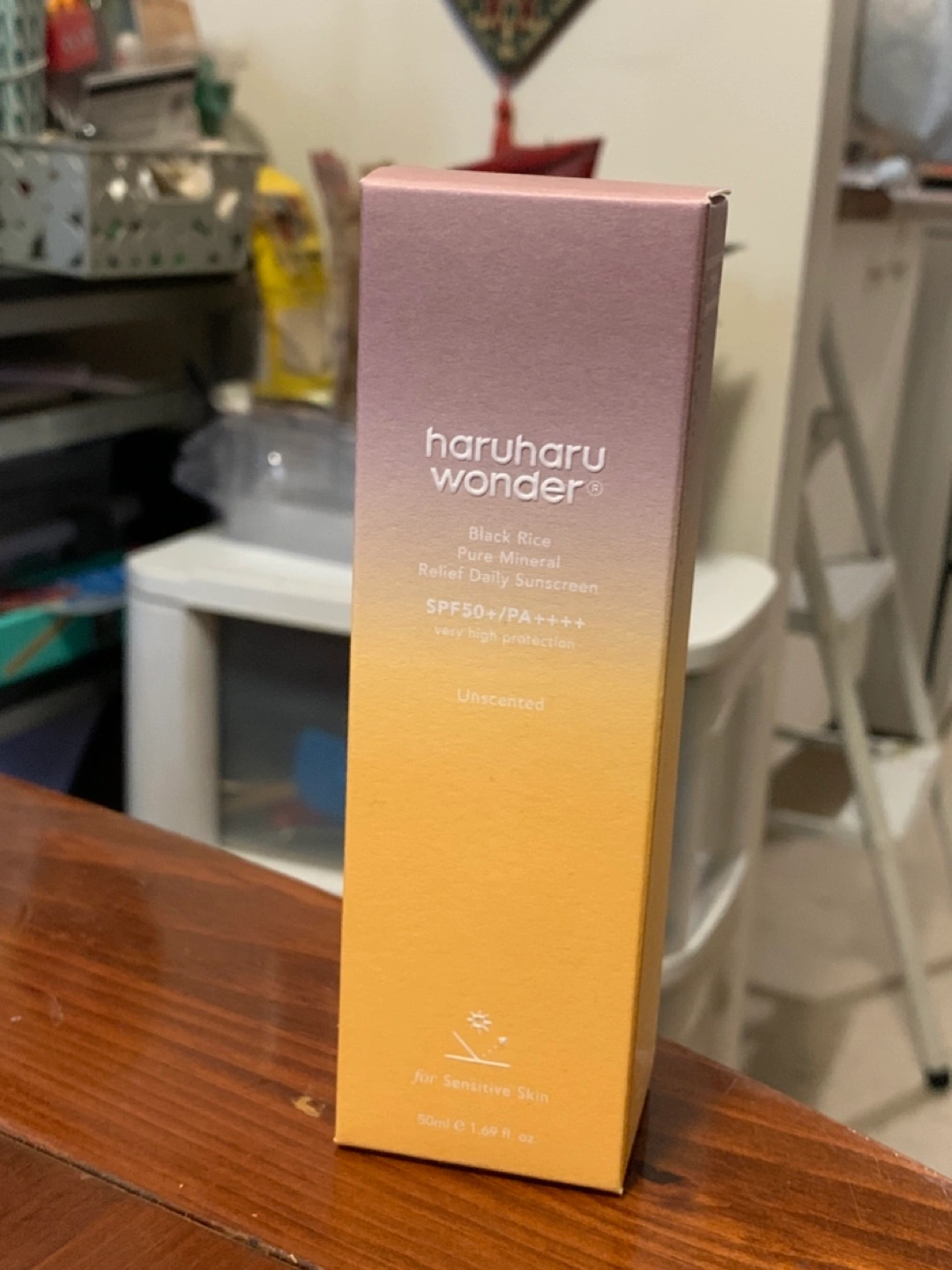 Selling a brand new haruharu wonder Black Rice Pure Mineral Relief Daily Sunscreen SPF50+/PA++++. It's unscented and perfect for sensitive skin. The size is 50ml/1.69 fl oz. Expiry date is 2027 October 19