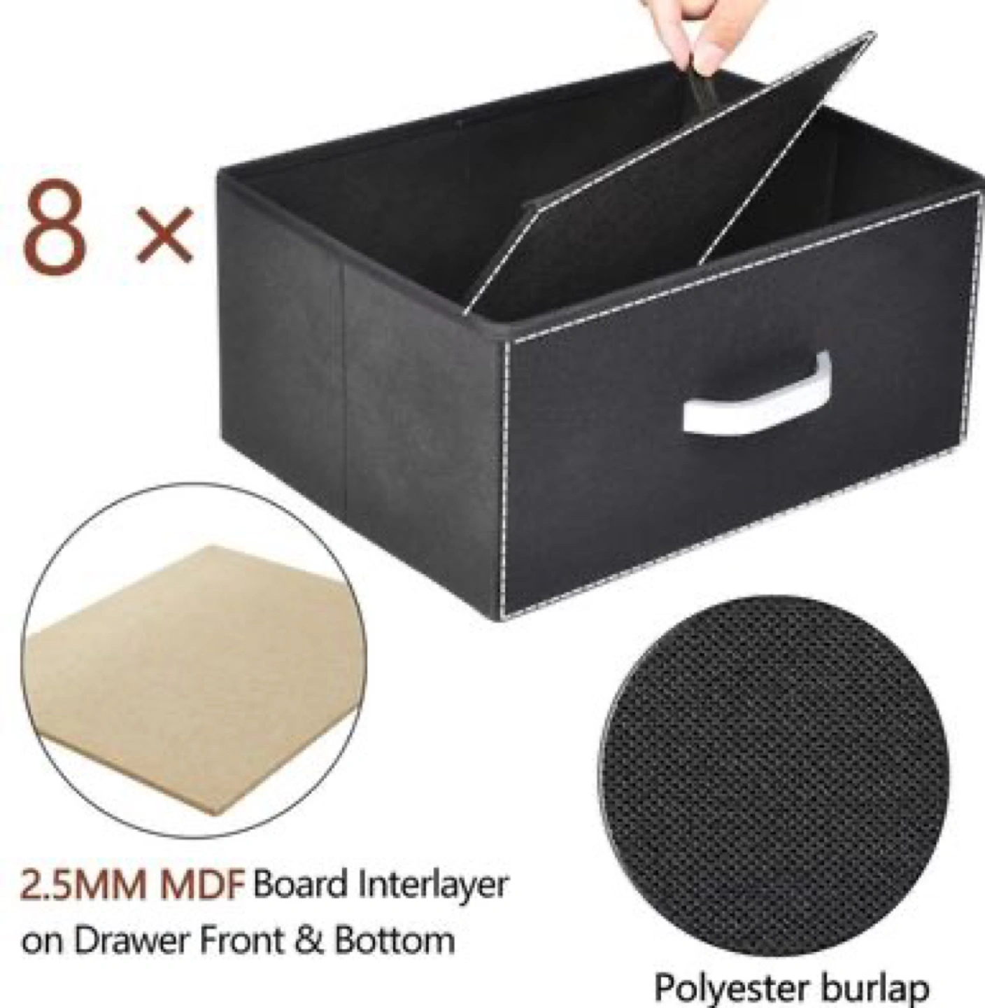 -Drawer material: polyester burlap fabric