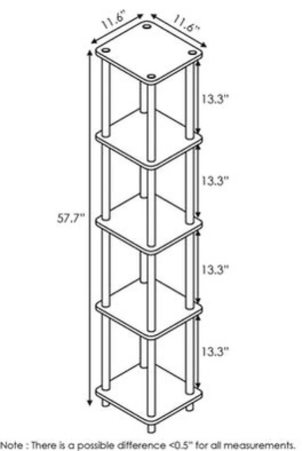 - Dimensions57.6'' H X 11.6'' W X 11.6'' D