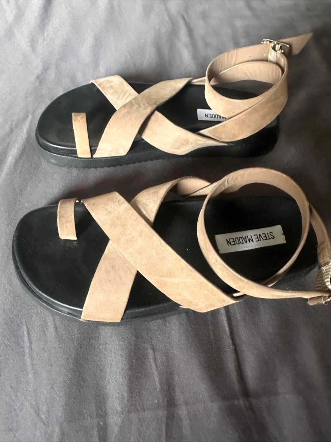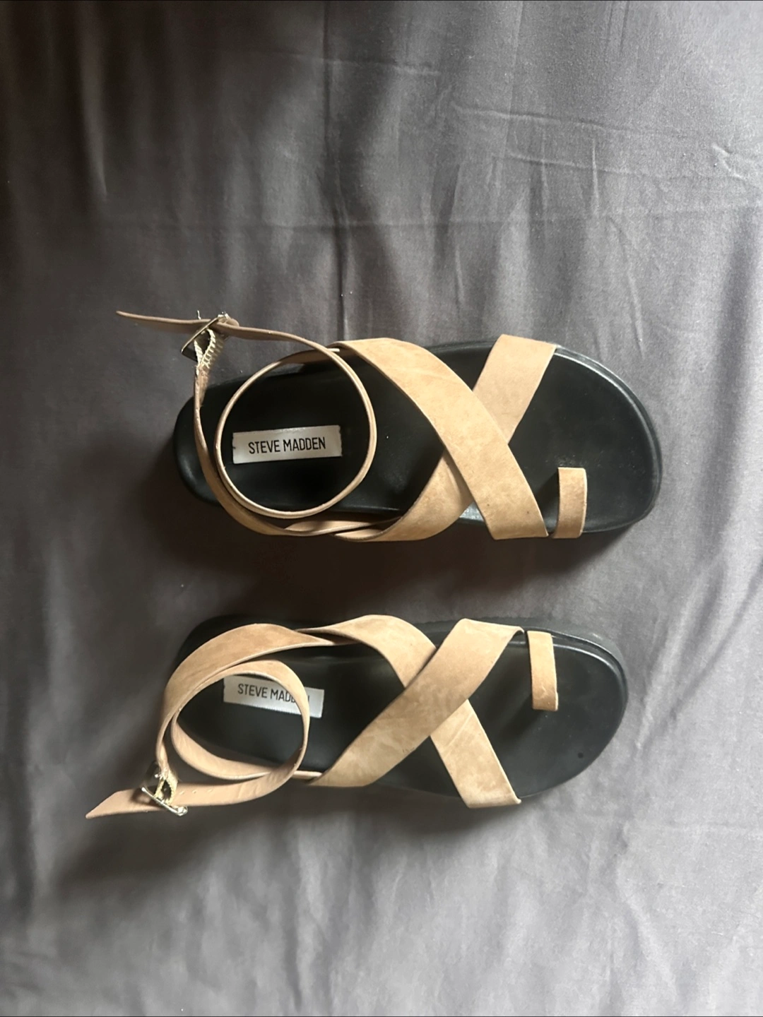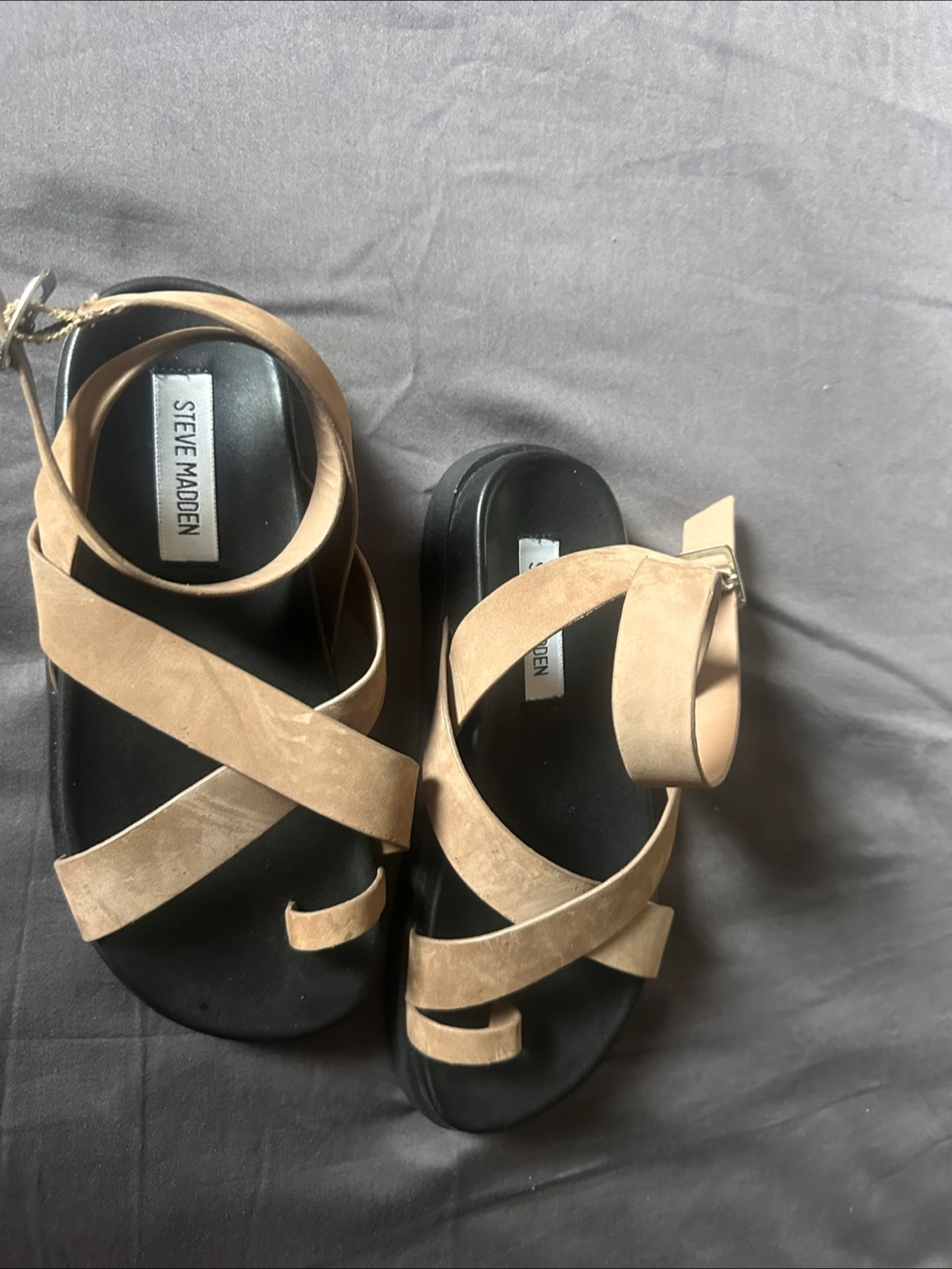 These Steve Madden sandals are in great condition, never worn. They feature a toe ring design with a tan colour. Perfect for adding a touch of style to your summer outfits