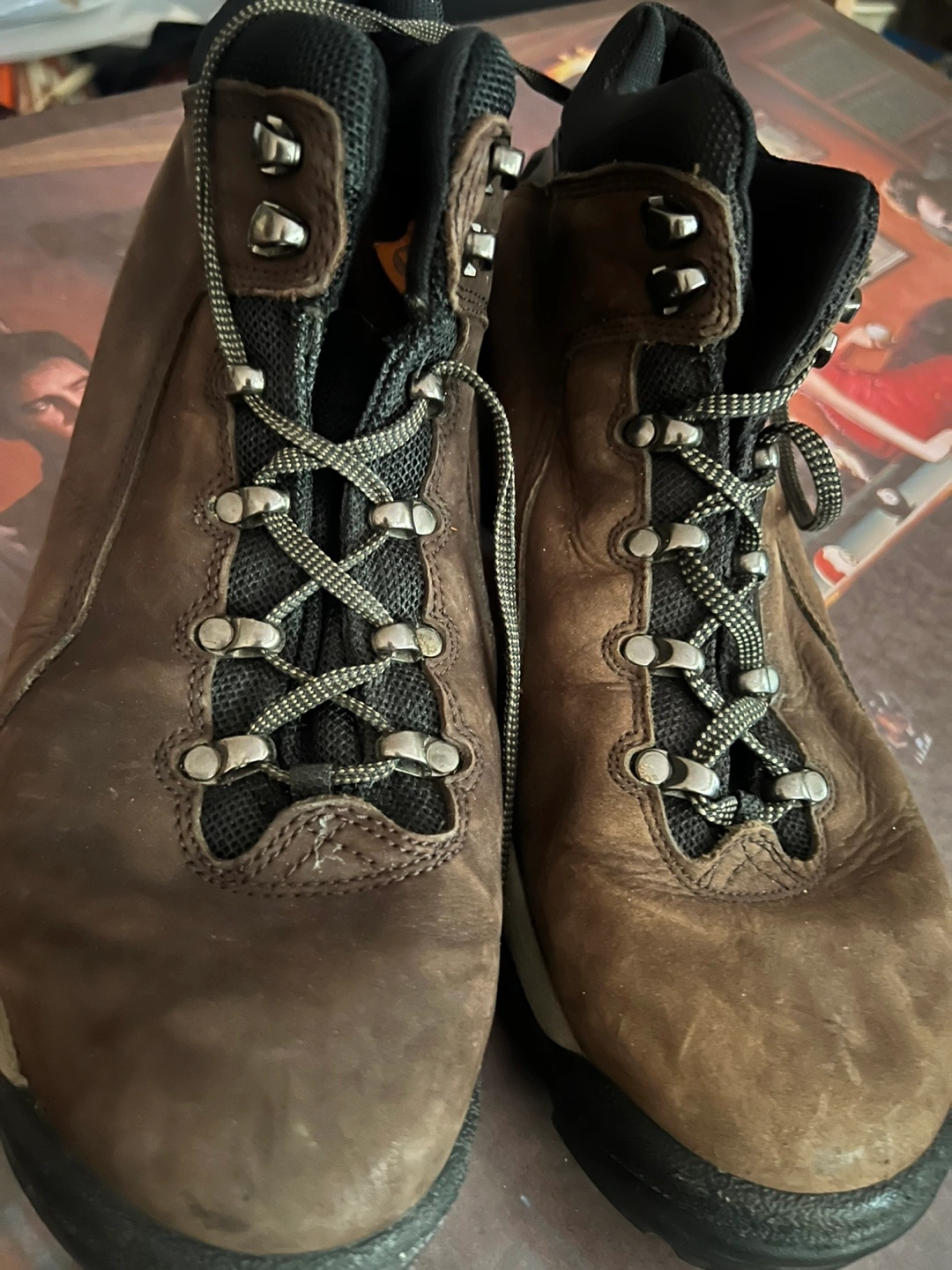 Selling a pair of Timberland hiking boots in brown leather. They've been used, but are still in good condition for hitting the trails. These boots are durable and ready for your next adventure! Size 11