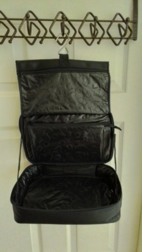 Rarely used Shiseido travel cosmetic organizer in black! It's in great shape and perfect for keeping your makeup and toiletries organized on the go. The interior has a cool pattern with the Shiseido logo. Convenient handle for carrying and interior hook for hanging, making this great for travelling.
