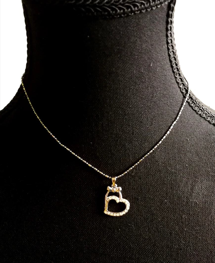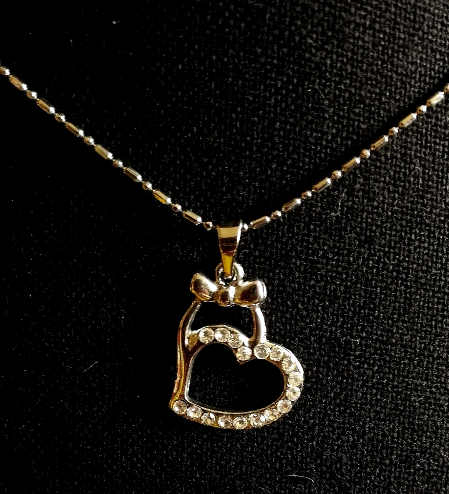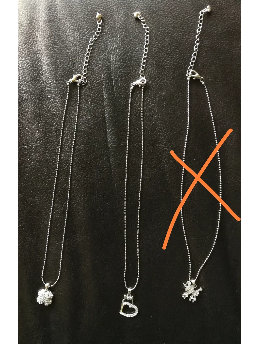 Selling a collection of brand new cute necklaces with pendant covered in rhinestones - clovers and heart. (Poodle is sold)