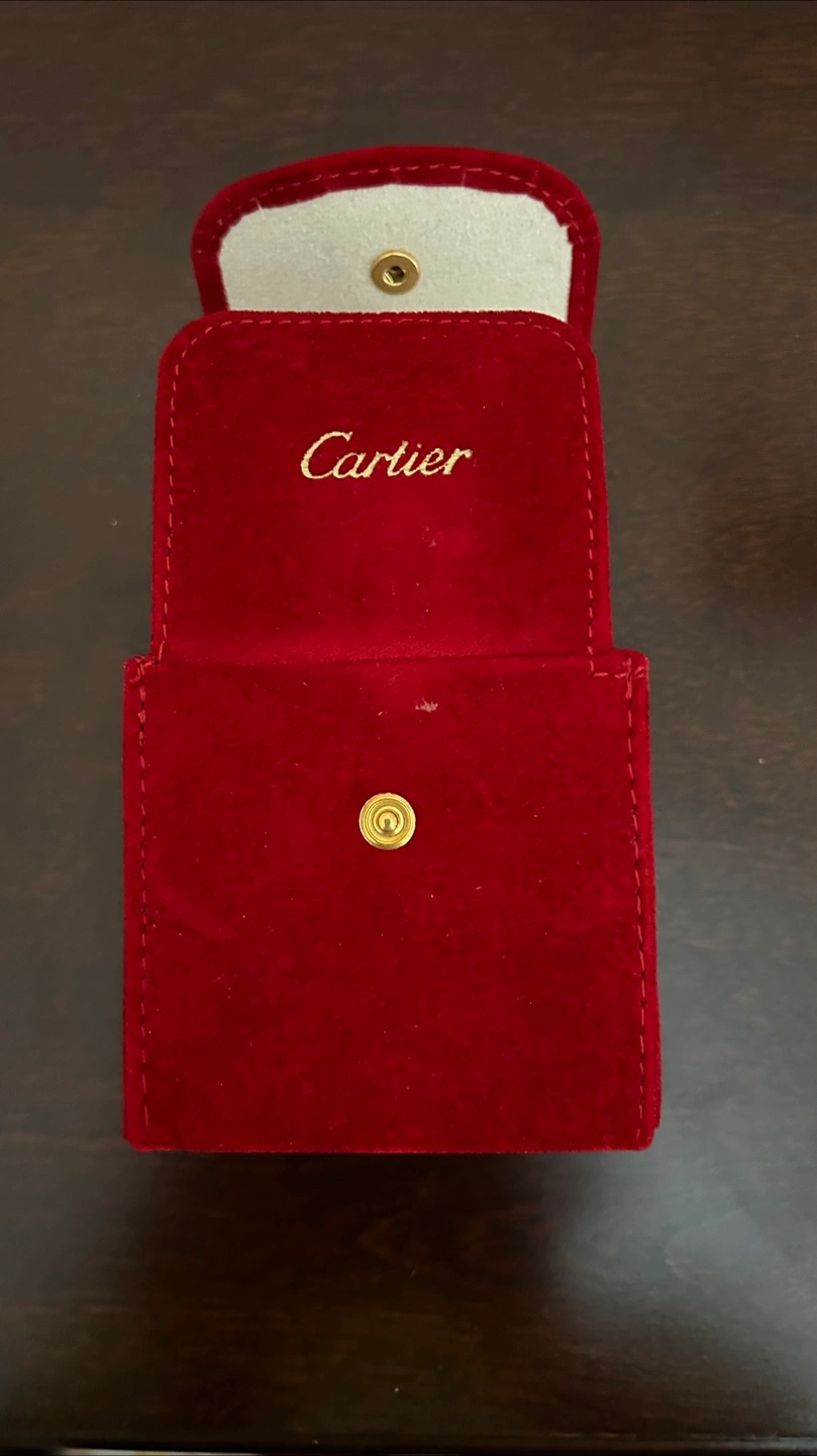 Selling a red Cartier jewelry pouch! It's in great condition and perfect for storing your precious items. The pouch is a beautiful red colour and made of a soft, velvety material.