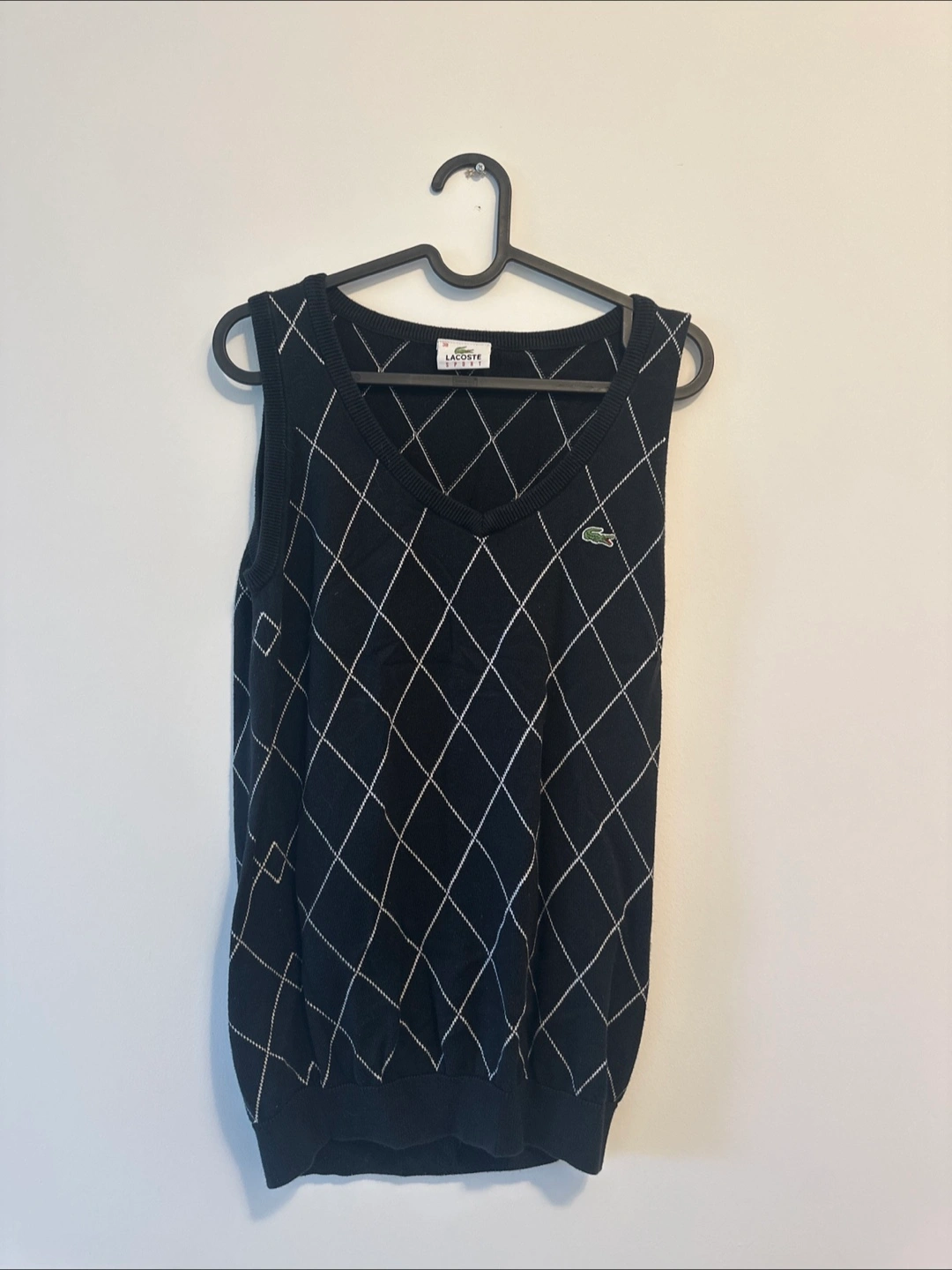 Classic Lacoste knit vest in a timeless argyle pattern! It's a size 38 and in great condition. Perfect for layering or adding a touch of preppy style to your wardrobe