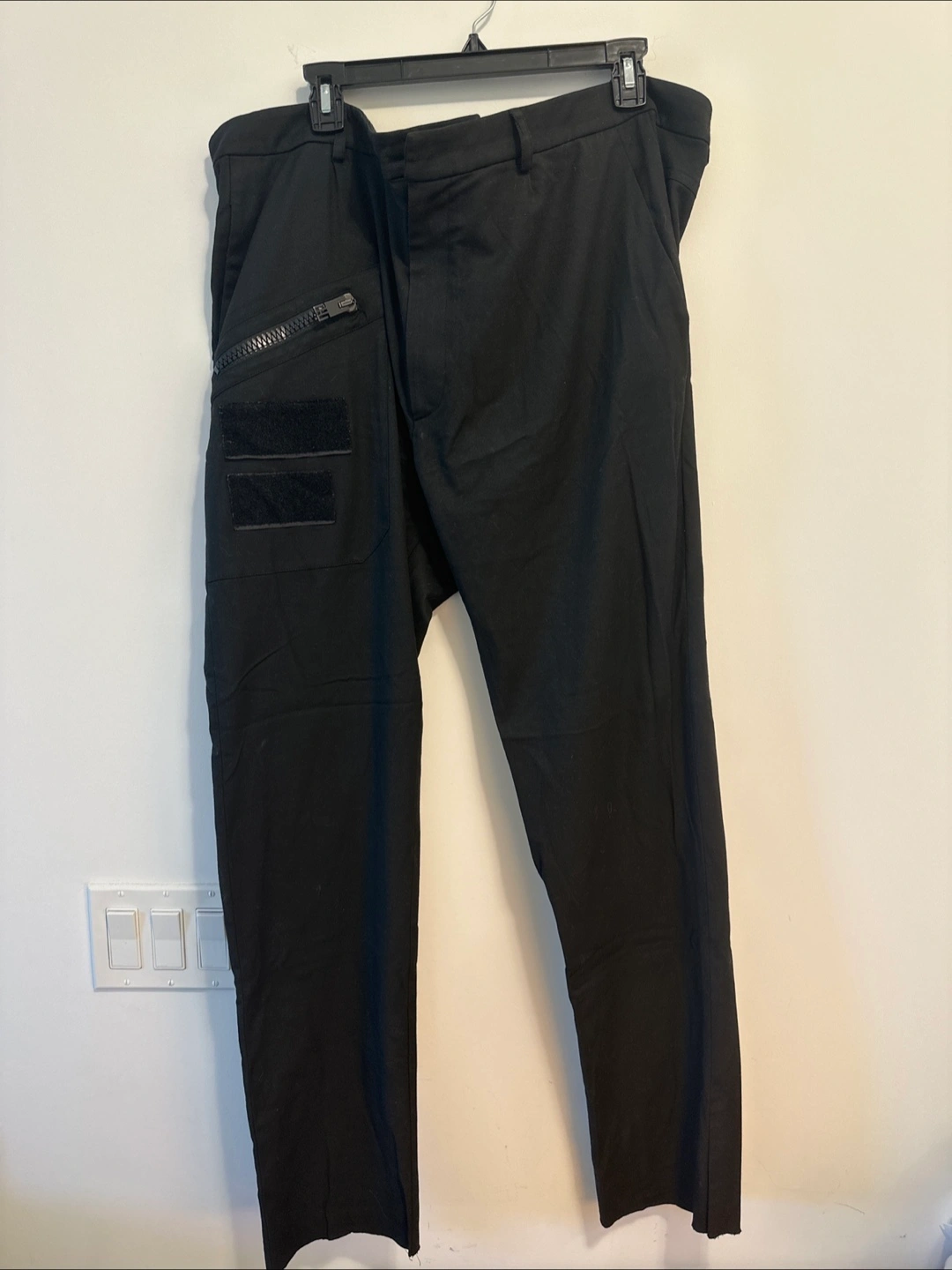 Selling a pair of black pants! They feature a unique zipper pocket detail and are in great condition. Perfect for adding a bit of edge to your wardrobe