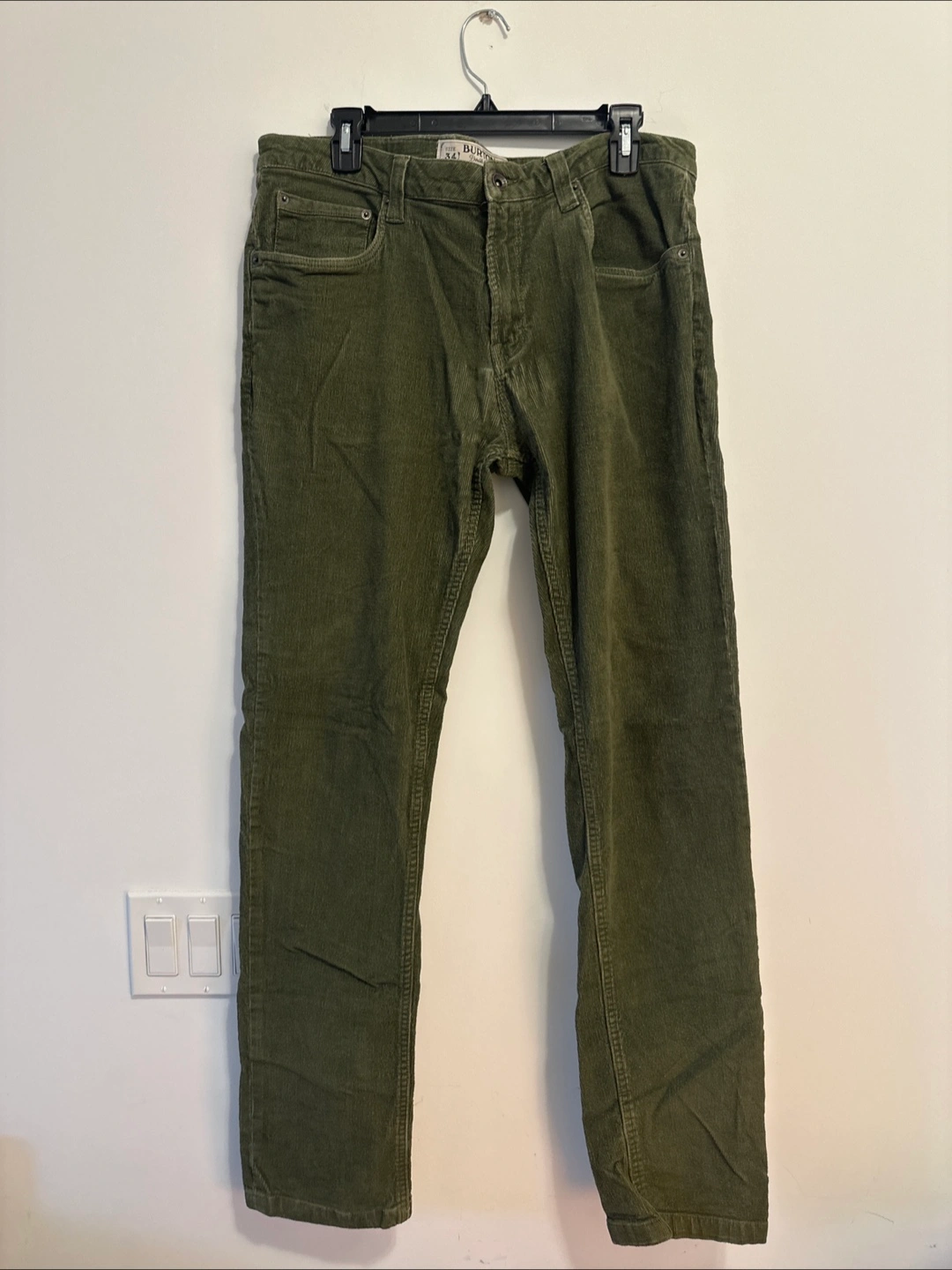 These are a pair of Burton men's corduroy pants in an olive green colour. They are size 34x32 and are in good condition. Perfect for everyday wear!