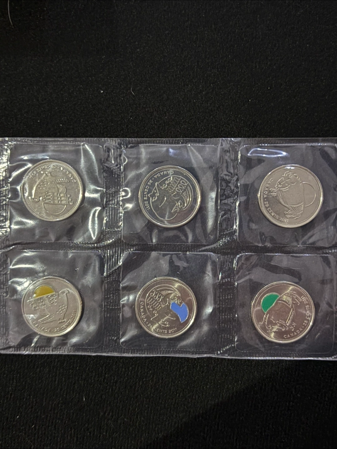 Selling a set of Canadian coloured quarters from the 2001 Millennium Collection. They are in great condition and a neat piece of Canadian history!