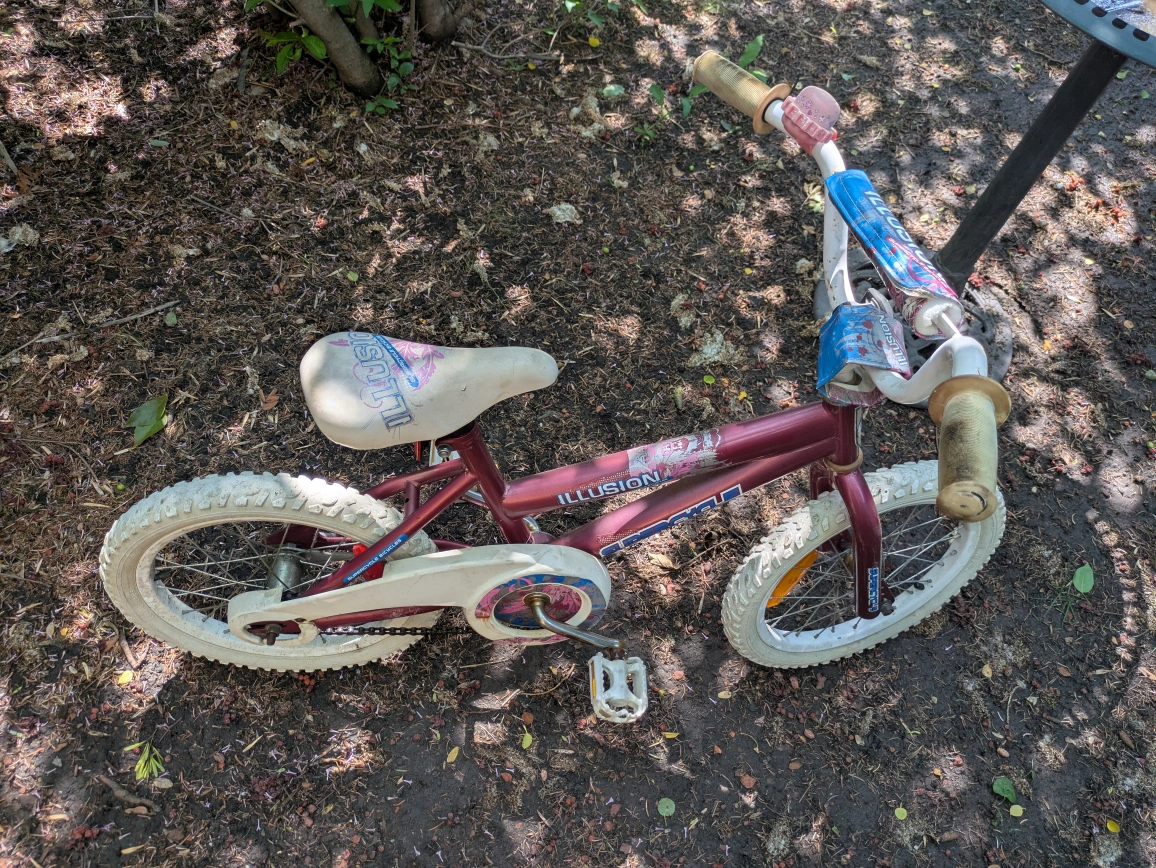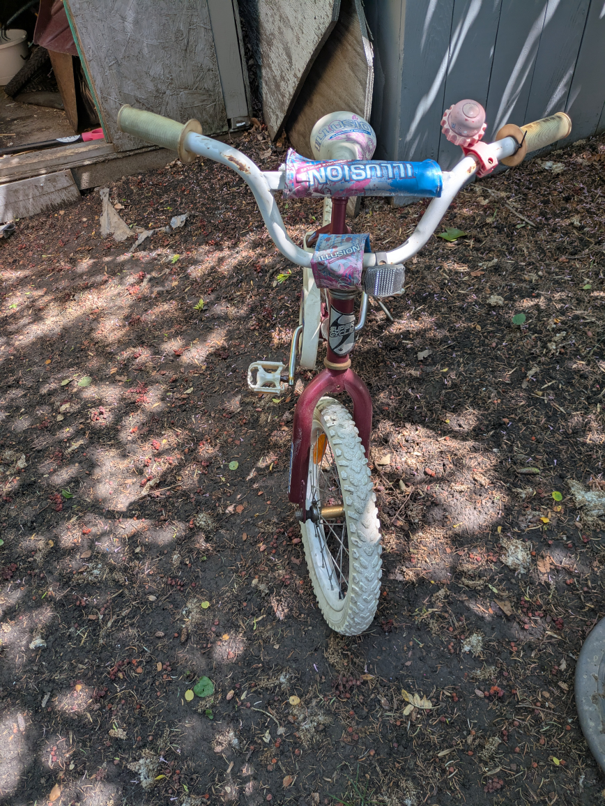 Selling a Supercycle Illusion kids bike. It's burgundy with white tires. Great for a kid learning to ride!
