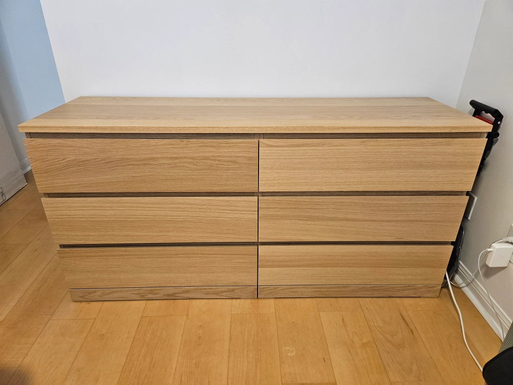 Selling a gently used IKEA MALM 6-drawer dresser. It's in great condition and perfect for adding storage to any room. The light wood finish is neutral and will match most decor styles. It's a sturdy and reliable piece of furniture!
