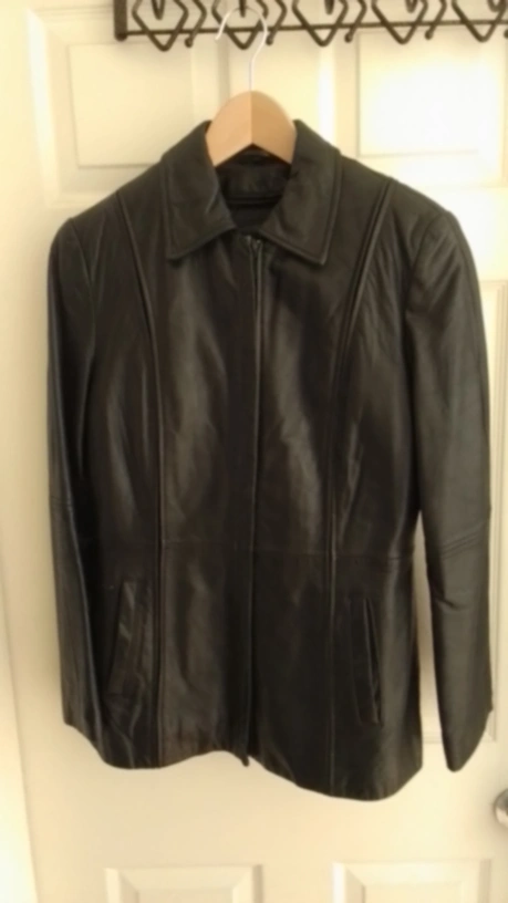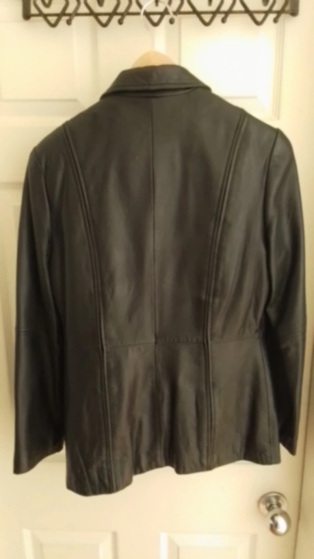 Selling a Danier Canada black leather jacket (27" in length). The size fits 4-6 (US/CAN).