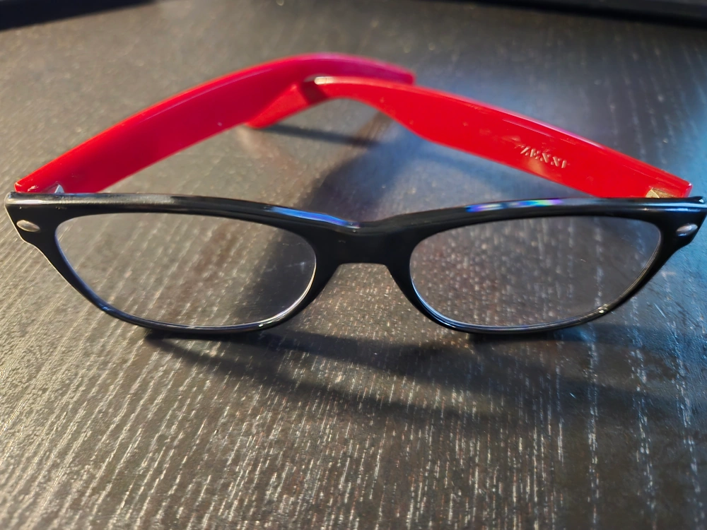 Selling a pair of Zenni Optical glasses with a black frame and red arms. They're in good condition. Glasses do have a prescription. selling for the frames. pick up only at Gerrard and Greenwood