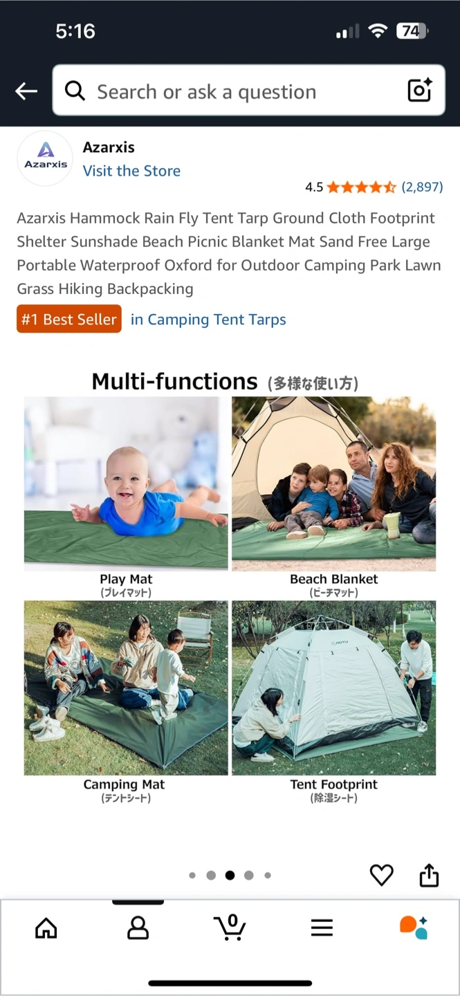Tent tarp / Beach picnic blanket mat (Waterproof)