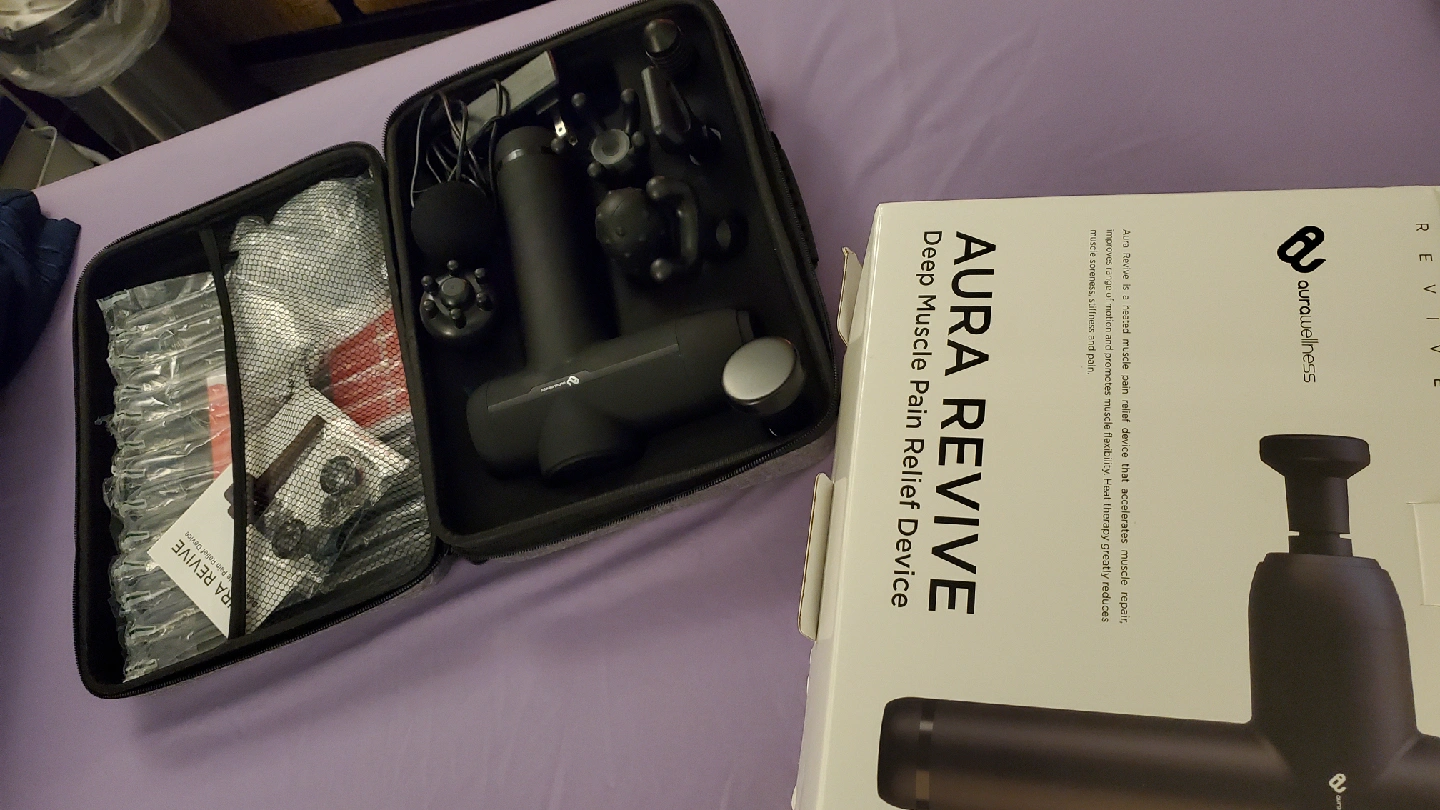 I'm selling an Aura Revive deep muscle pain relief device. This device features patented heated infrared technology for faster warm-up, recovery, and deeper muscle relief. It also has deep tissue relief with multiple interchangeable heads for maximum flexibility and whisper-quiet technology for super quiet operation for up to 3 hours of continuous use.