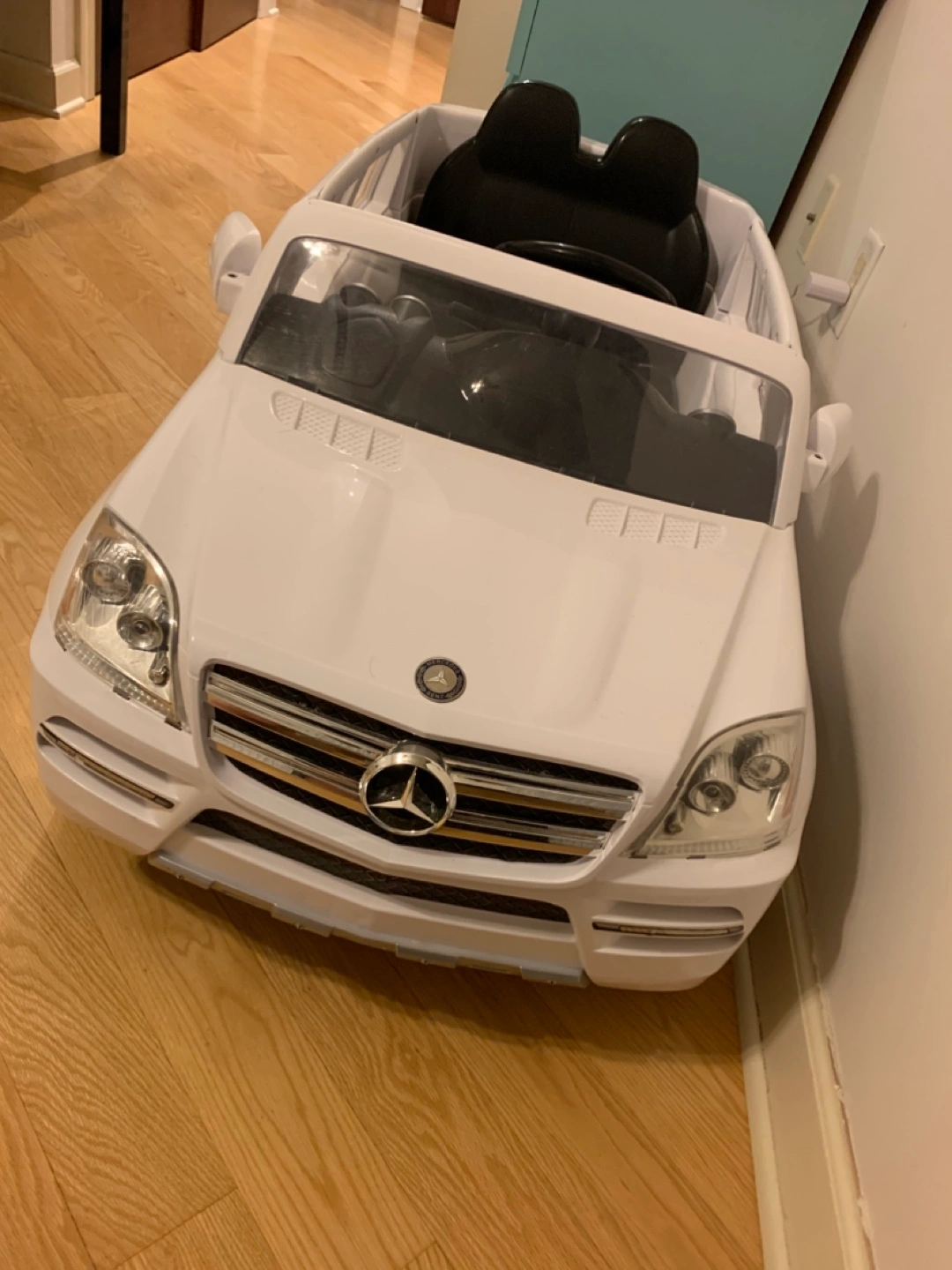 Selling a cute Mercedes-Benz ride-on car for kids! It's white and never use, it’s new. Perfect for your little one to cruise around in style. The car features a realistic design with the Mercedes-Benz logo and detailing. Your kid will love it!