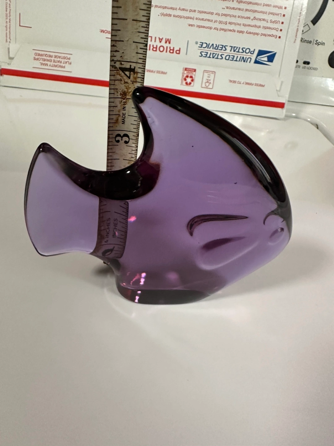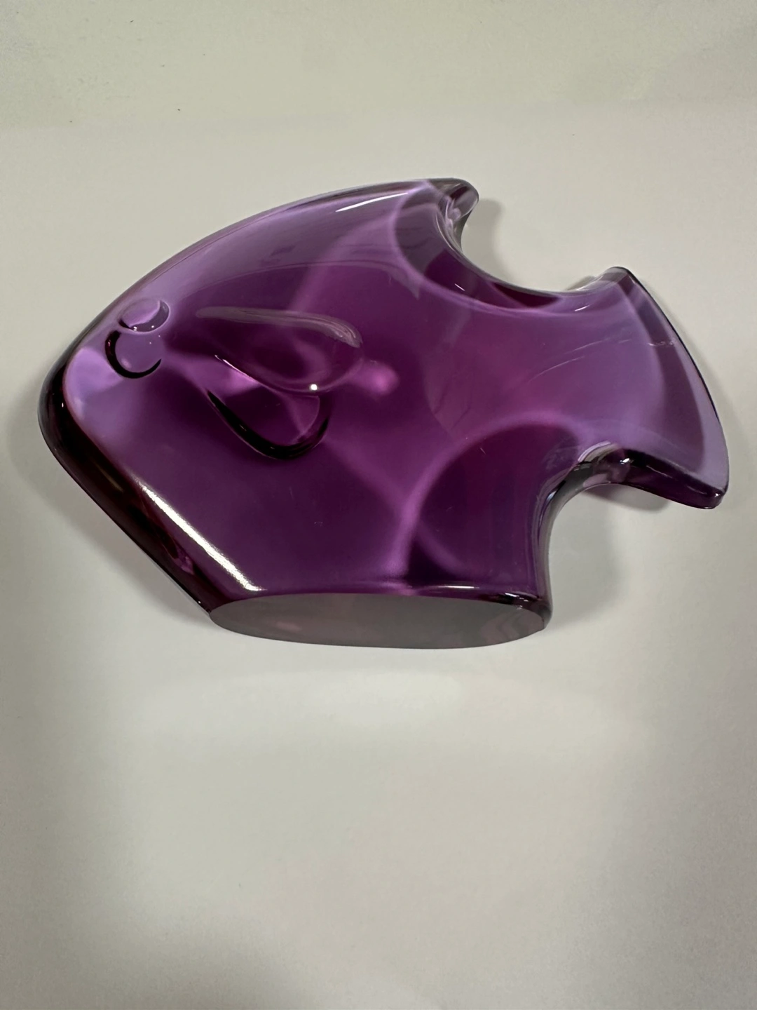 Here's a lovely vintage purple Bleikristall German crystal glass paperweight fish It measures approximately 5 inches in length and 4 inches in height. It would make a great addition to any collection or as a decorative piece pick up or delivery BX cash no scratches or chips beautiful condition