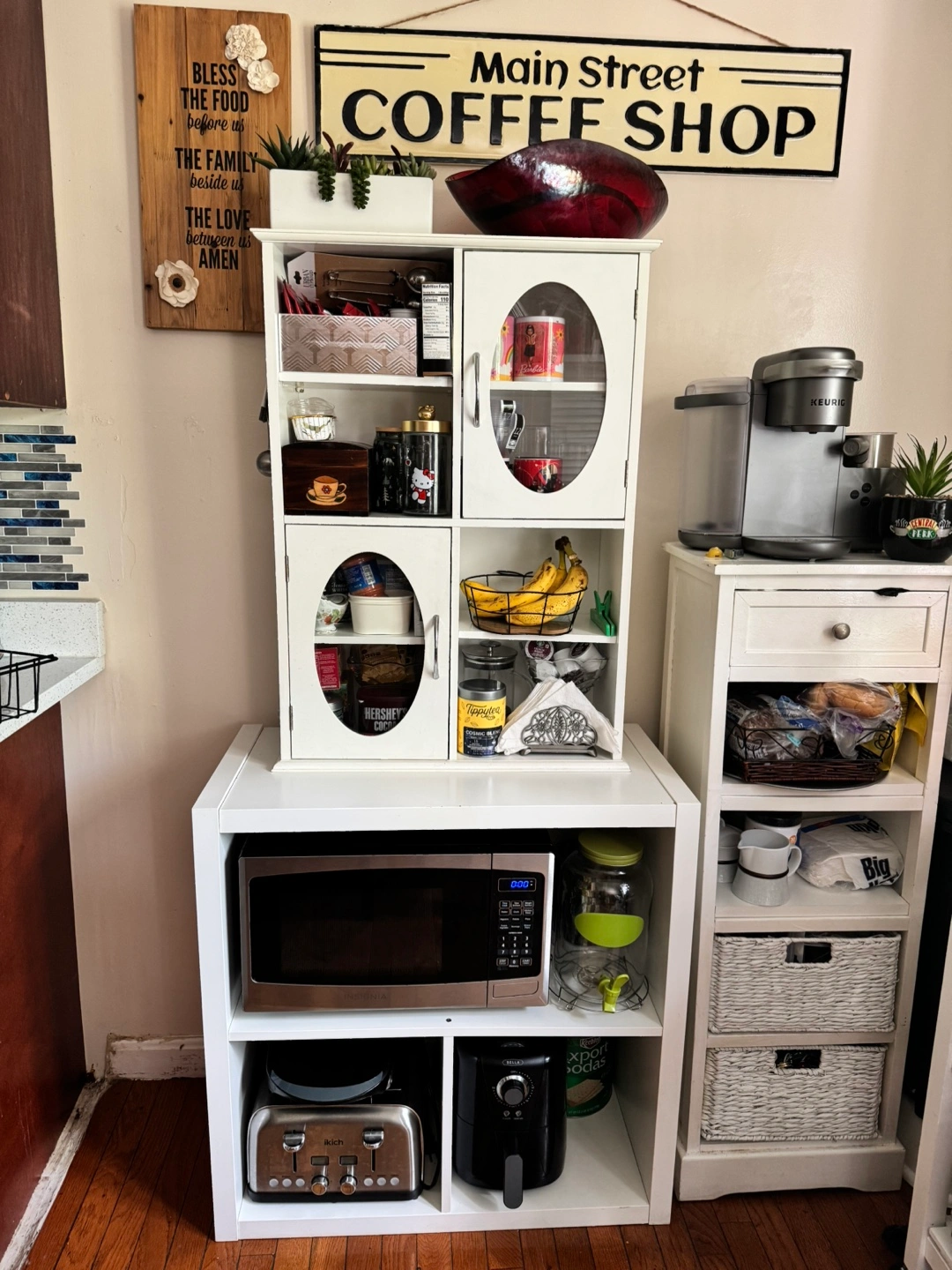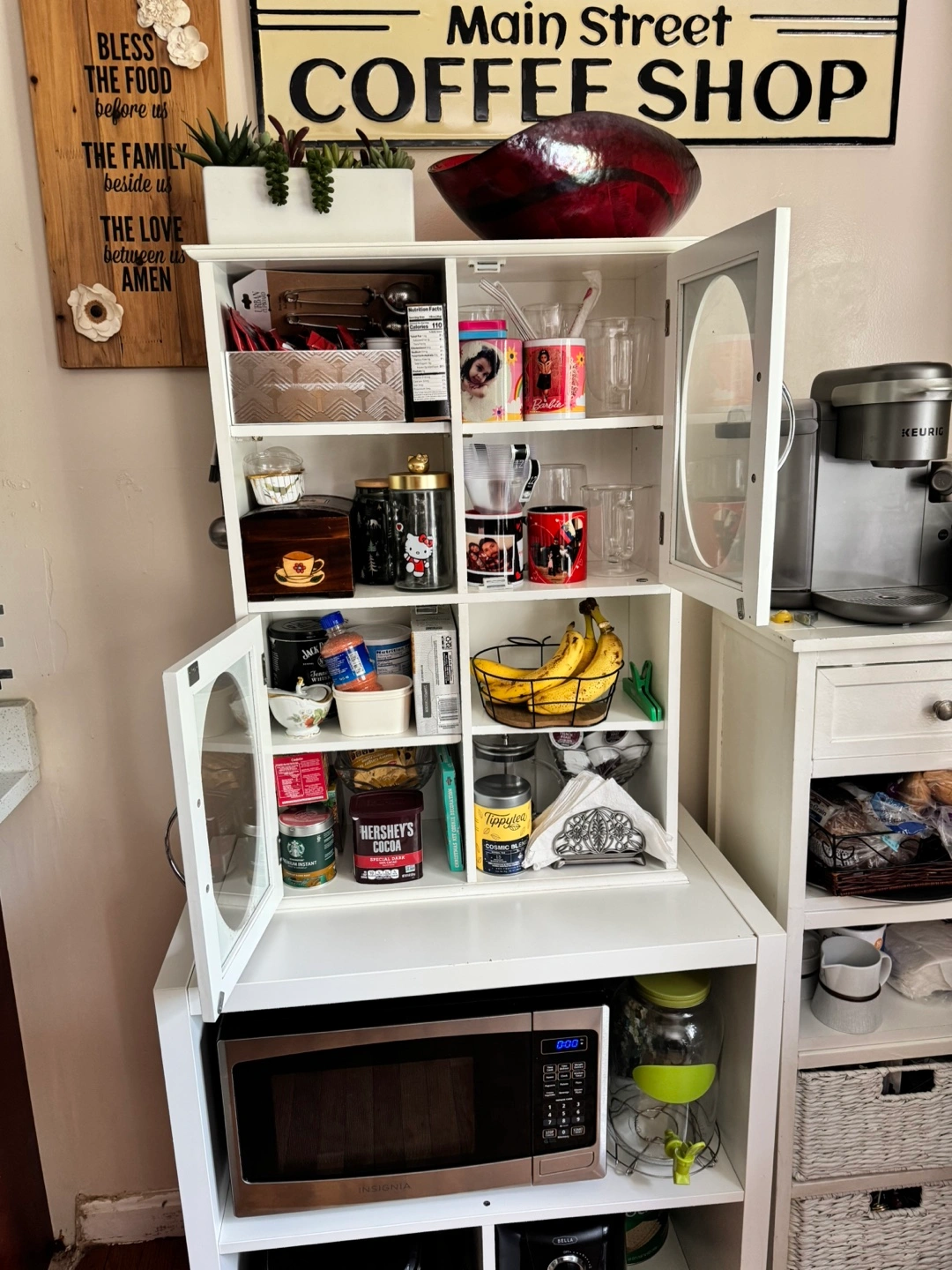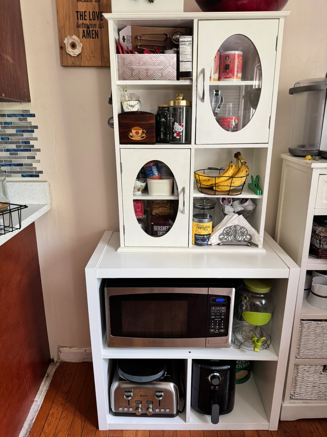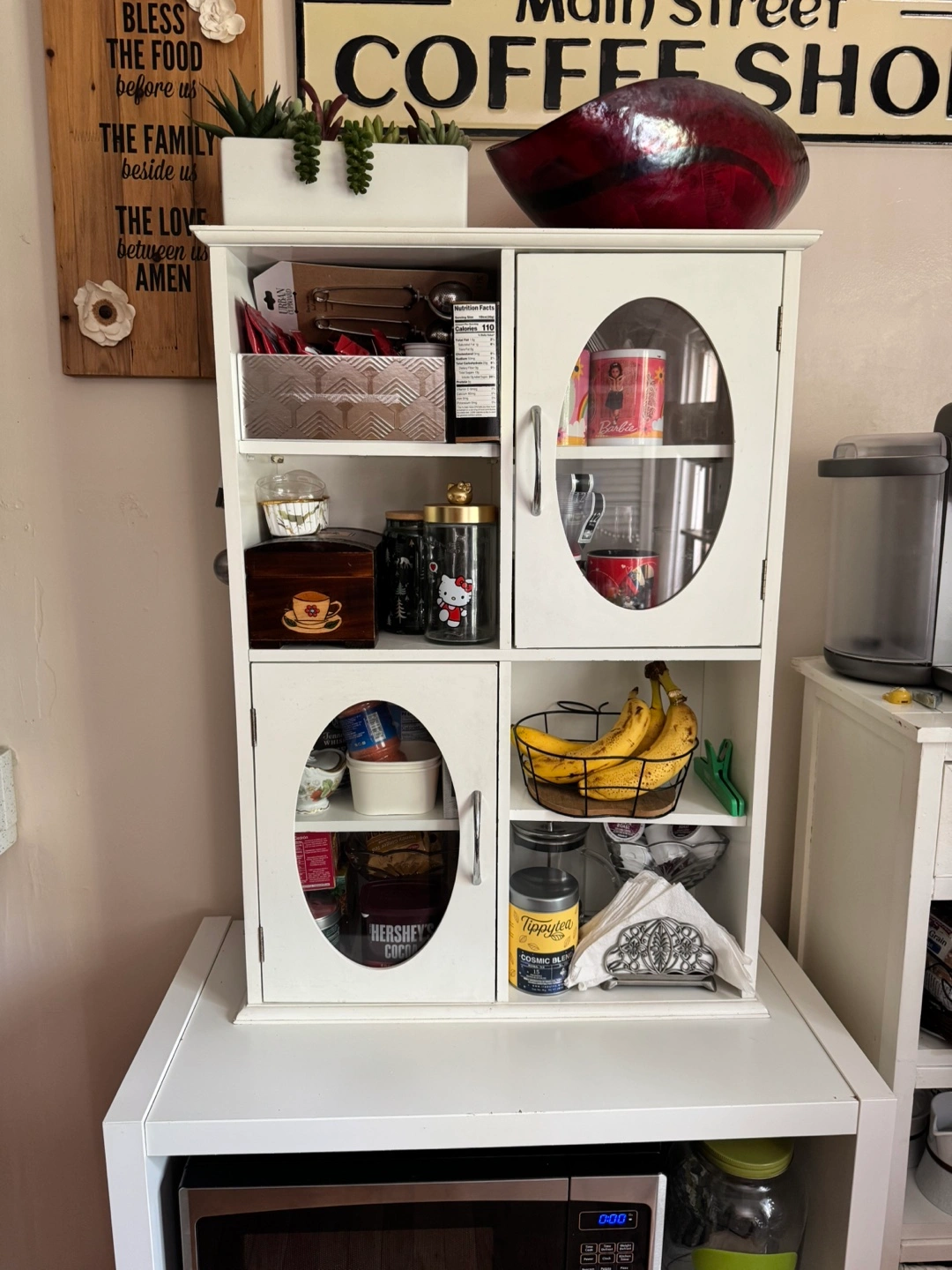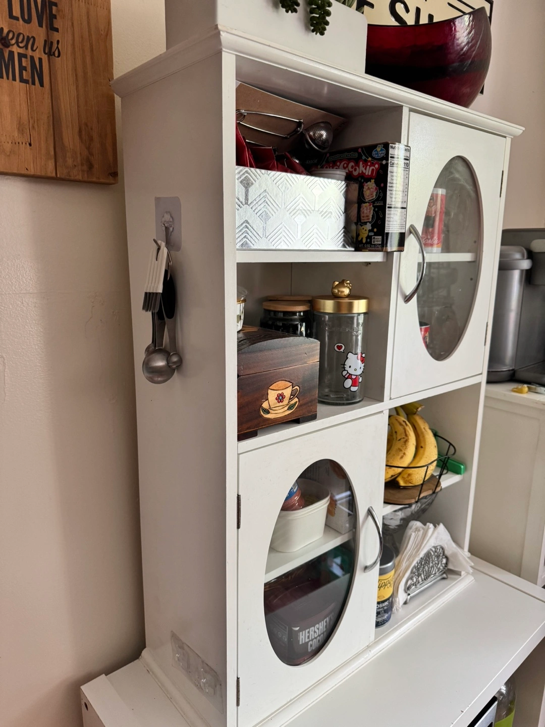 White Kitchen Hutch with Glass Doors