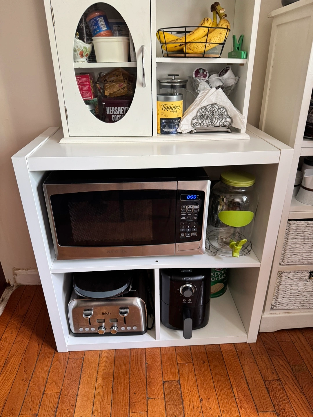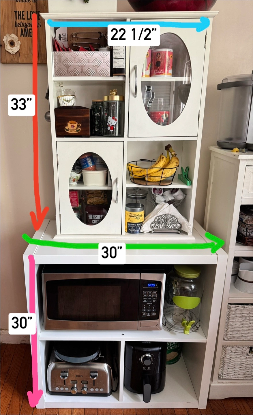 Selling a charming white kitchen hutch! It features glass doors and offers plenty of storage space for your kitchen essentials. Perfect for adding a touch of farmhouse style to your home. Easy to transport, it comes in two parts. Ready for pickup in Jamaica Hills 11432.