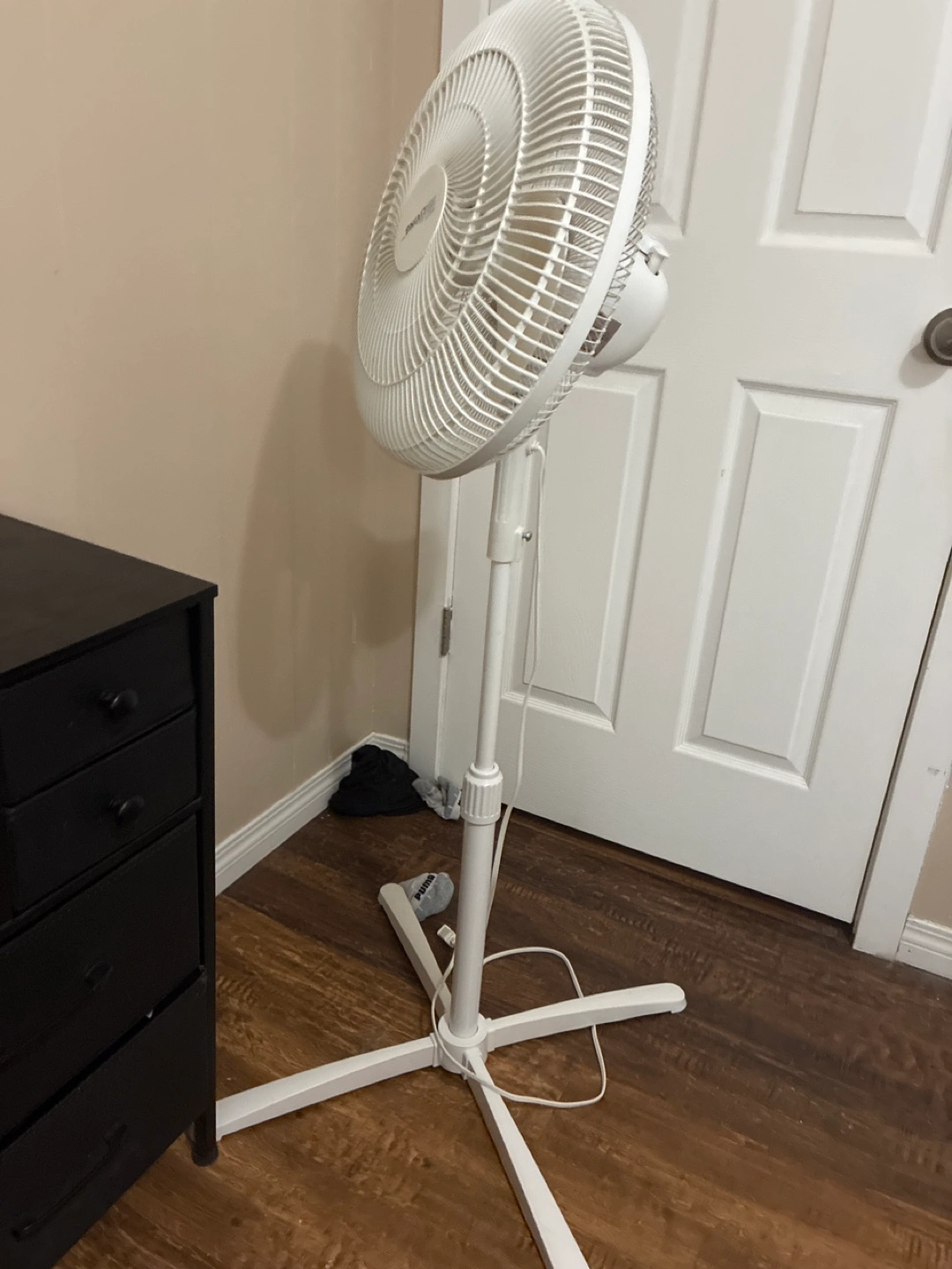 Selling a white pedestal fan in good condition. It's perfect for keeping cool during the summer months