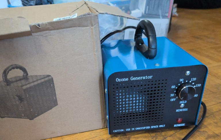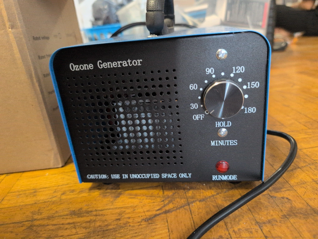 Selling an Ozone Generator. It comes with the original box. It has a timer with settings ranging from 30 to 150 minutes. Please use only in unoccupied spaces.