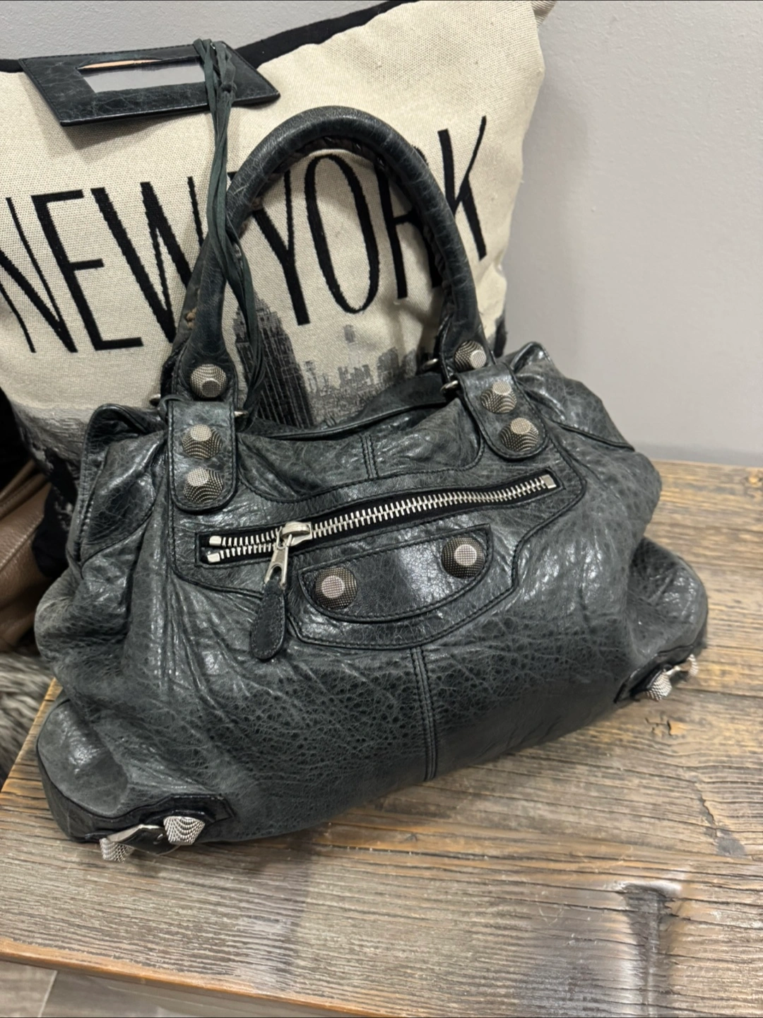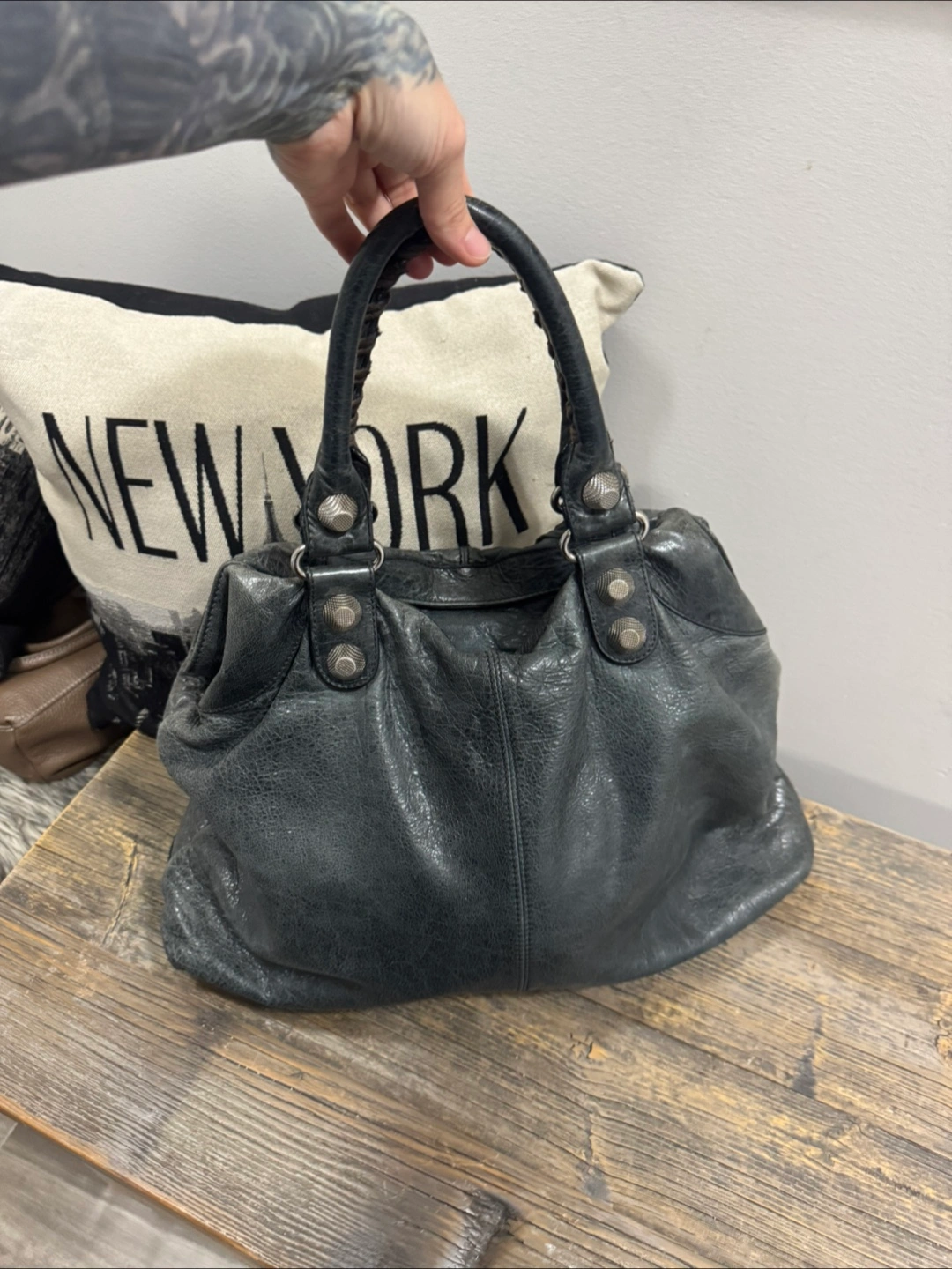 Balenciag grey - greeb Leather Handbag (as is)