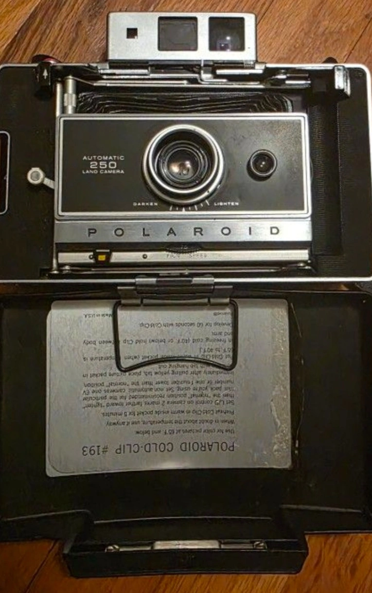 Selling a vintage Polaroid Automatic 250 Land Camera! It comes with its original case and what appears to be the original instruction manual. A cool piece of history for any camera collector or photography enthusiast