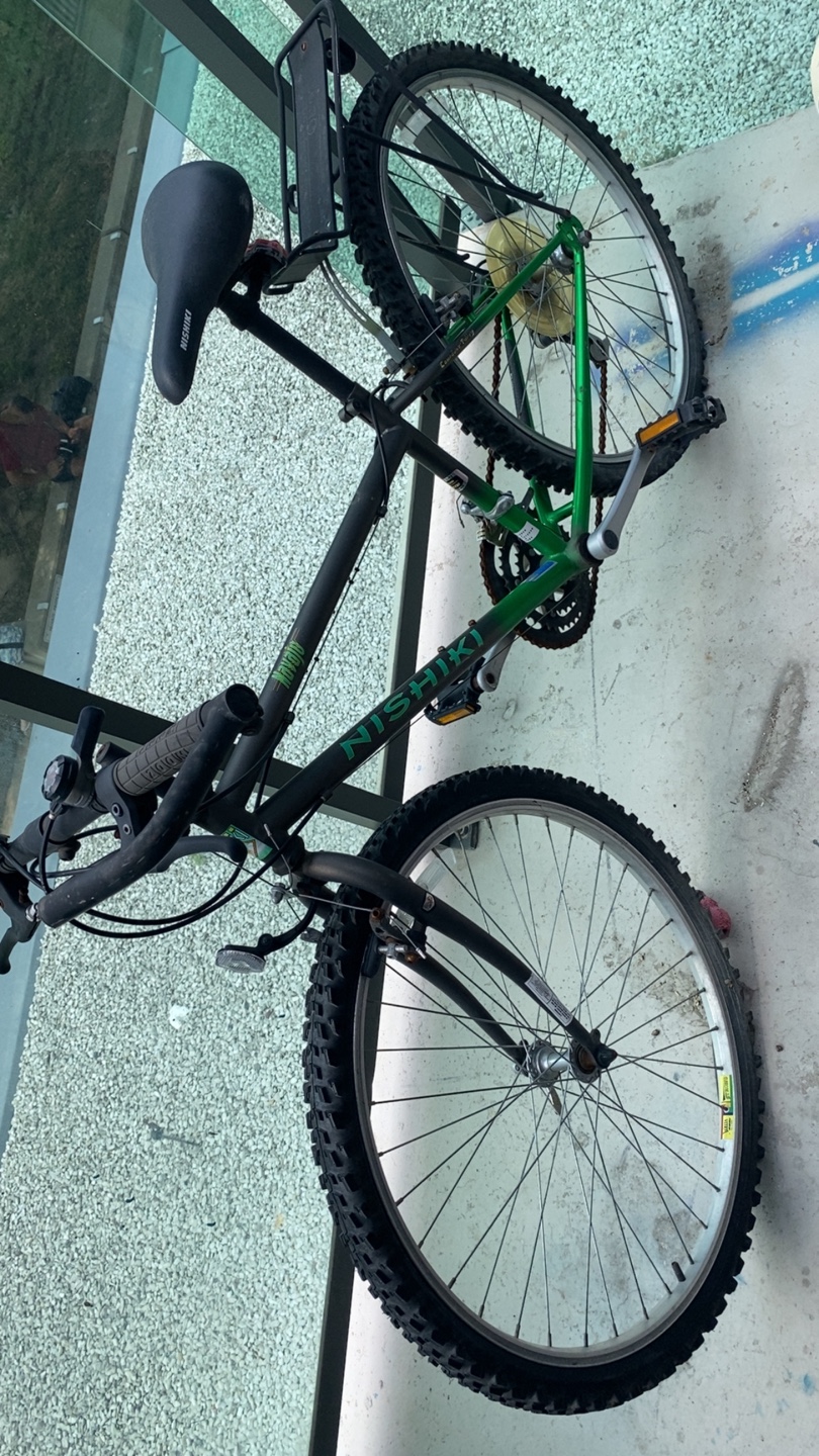 Selling a Nishiki mountain bike in a green and black colour scheme. It's in good condition and ready for some off-road adventures! Perfect for trails or just getting around town