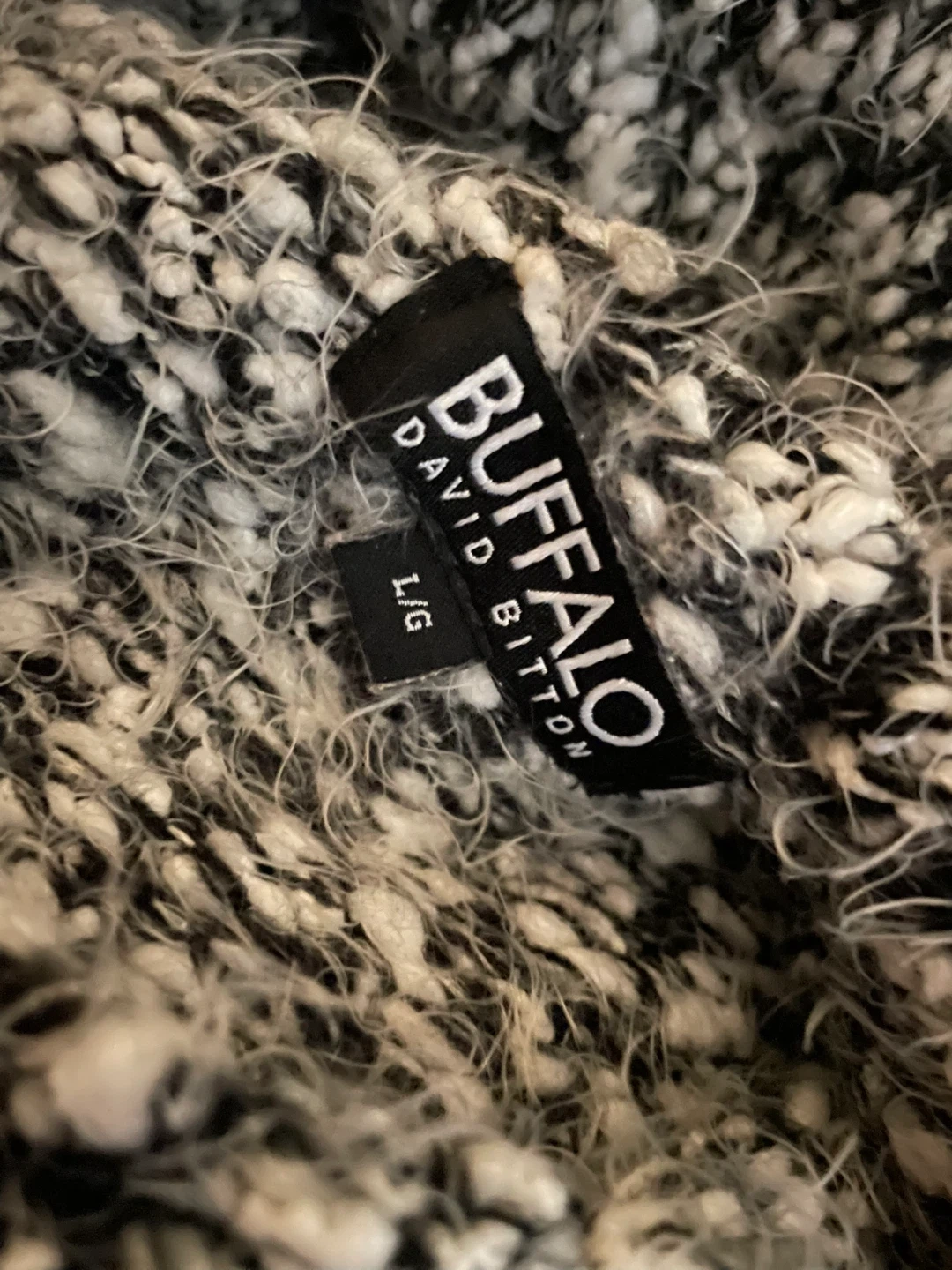 Luxuriously soft black and white popcorn knit sweater with cowl neckline. Worn twice and in like new condition. Buffalo, David Bitton. Size: Large