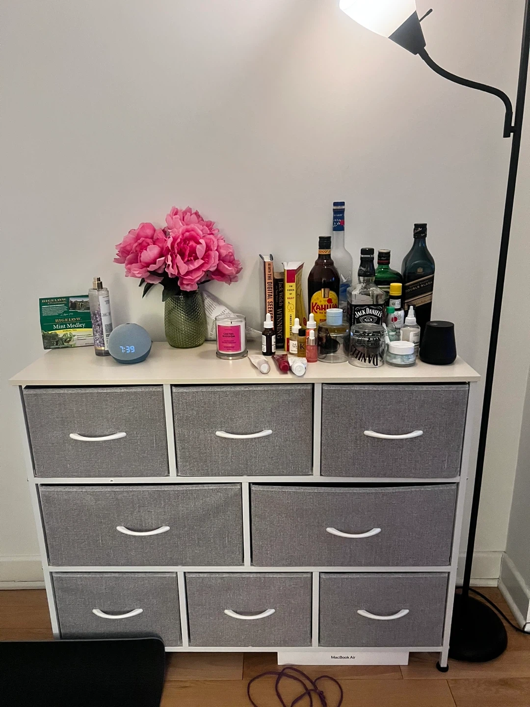 Black Floor Lamp with Shelves and USB Ports