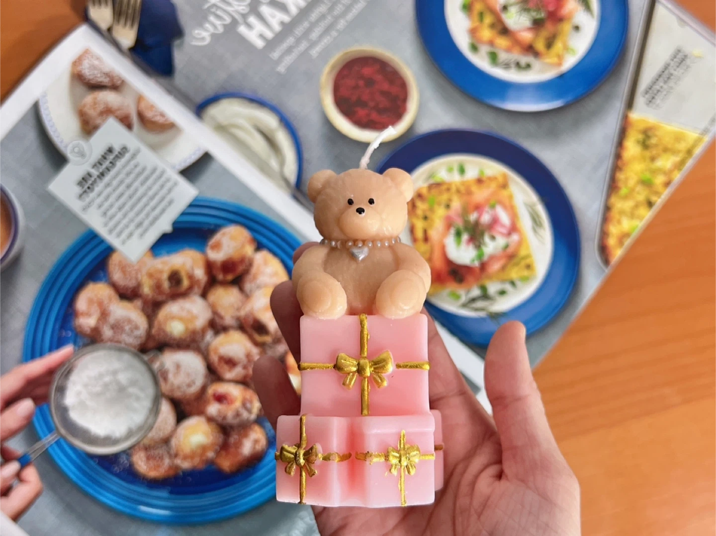 Handmade Teddy Bear Candle on Pink Gift Boxes