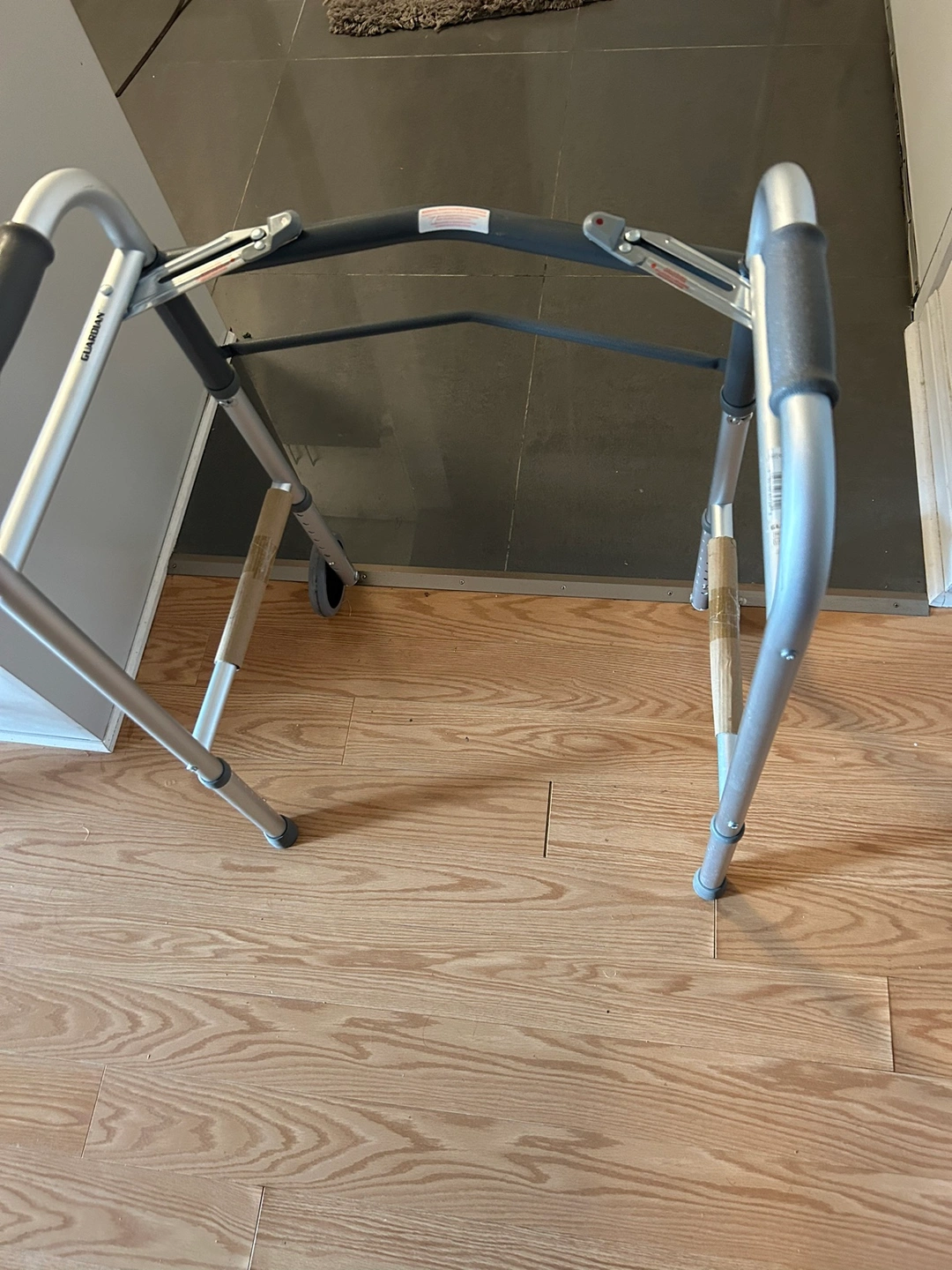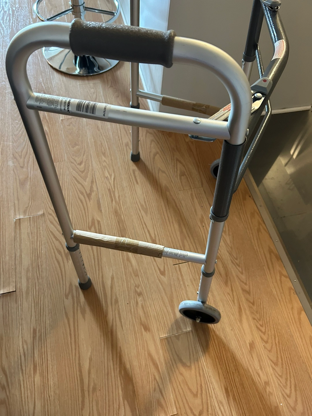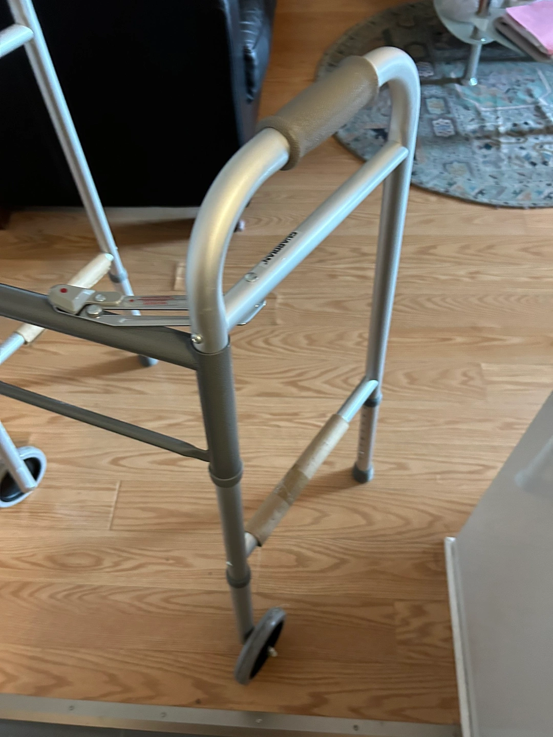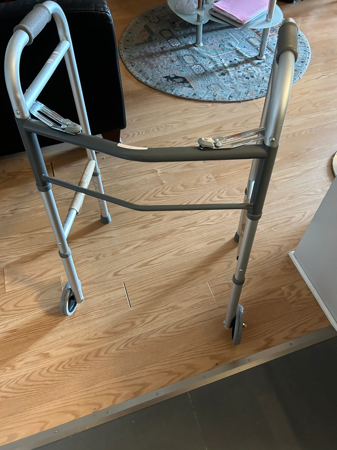 The walker is new and is very lightweight easy. It features an easy folding design and adjustable height. is comfortable and easy to fold down. This walker would be great for someone who needs help walking.