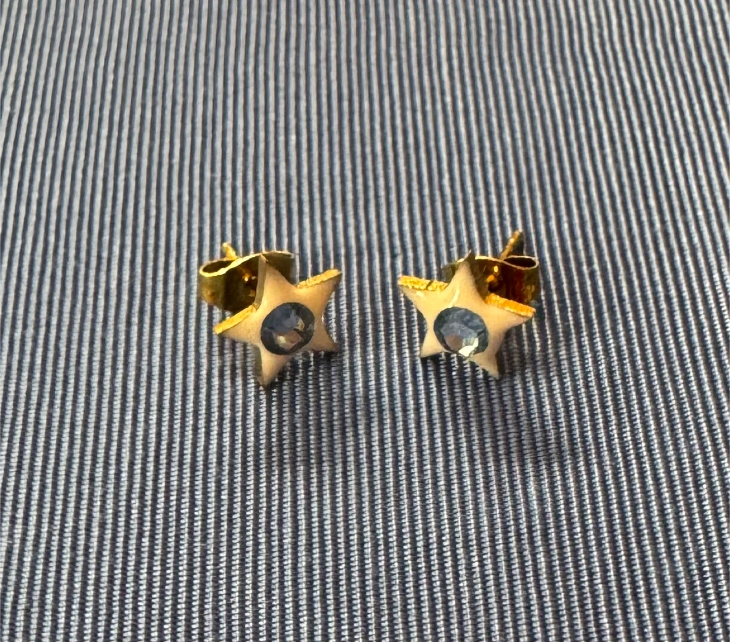 Selling these really pretty post back stud earrings, they are made with a light Cream color real enamel with a sparkling Light Blue gemstone center. They're lightweight and add a touch of fun to any outfit! Custom colors available!