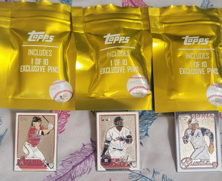 Selling these Topps baseball pins, still in their original packaging! Each pack includes 1 of 10 exclusive pins. Great for any baseball fan or collector