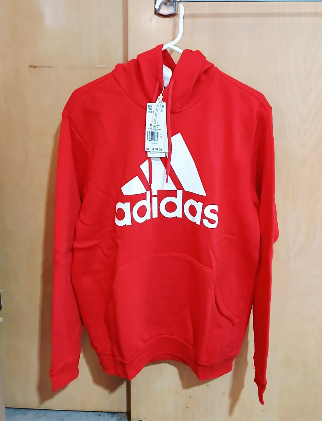 Selling a bright red Adidas hoodie in size medium! The hoodie features the classic Adidas logo on the front.