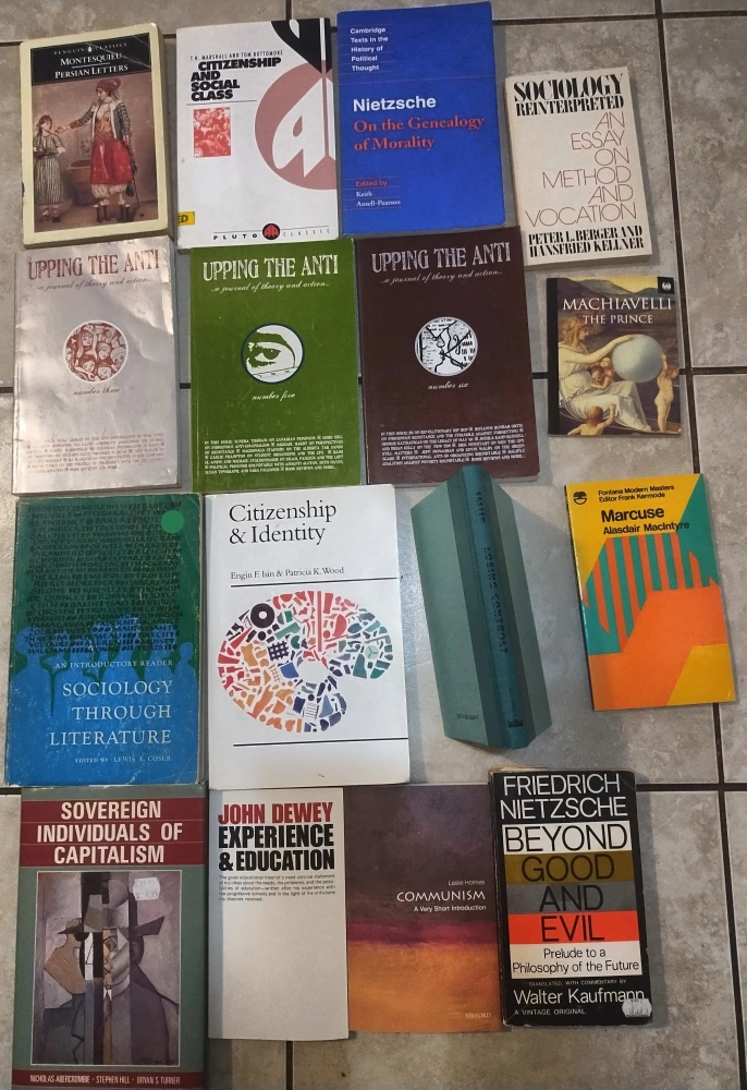Selling a collection of books on sociology, philosophy, and political thought. Titles include: