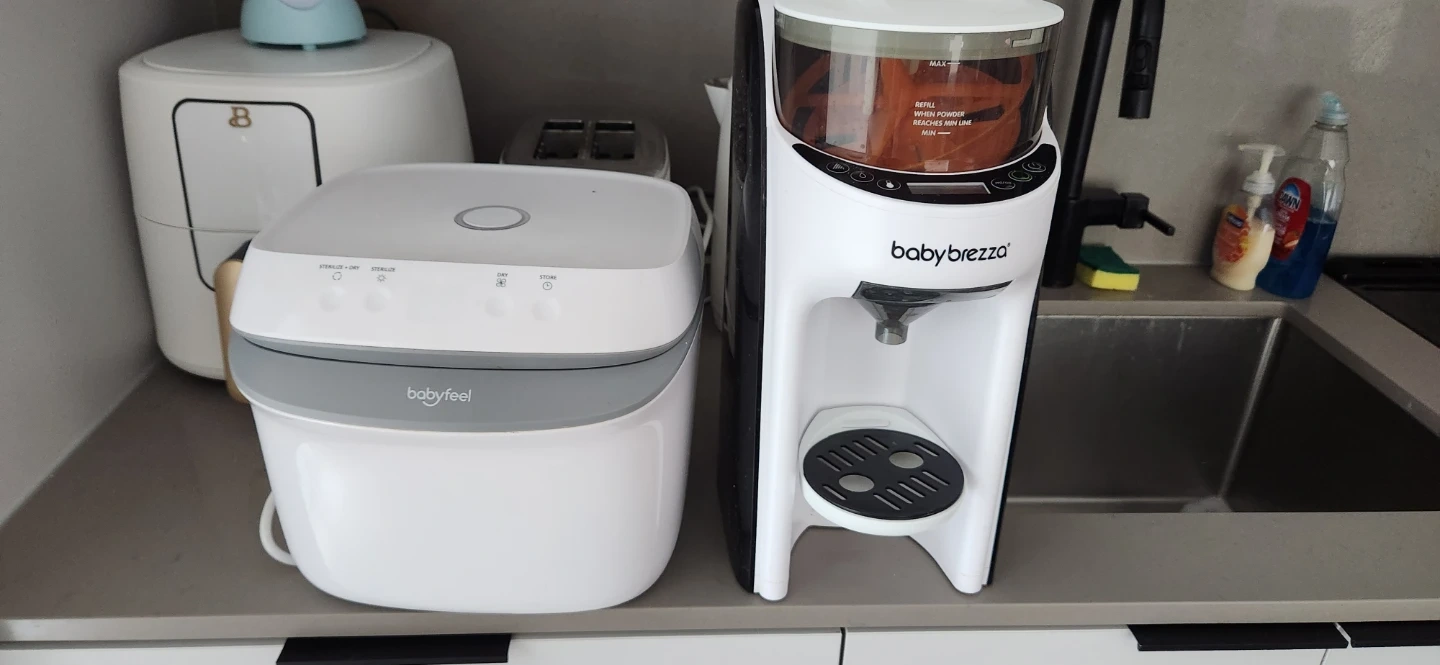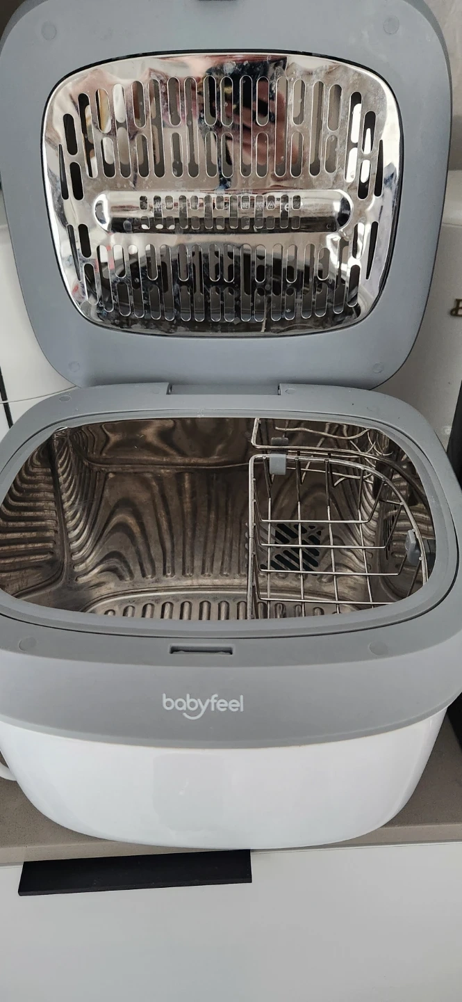 This Babyfeel sterilizer and dryer is designed for baby bottles and accessories, it's a uv light sterilizer no water no hassel!It features a stainless steel interior and a sterilization cycle. It's great for keeping your baby's feeding items clean and ready to use. I'm also including a Babybreeza formula pro Works perfectly and has been well taken care of. Clean and ready to use.