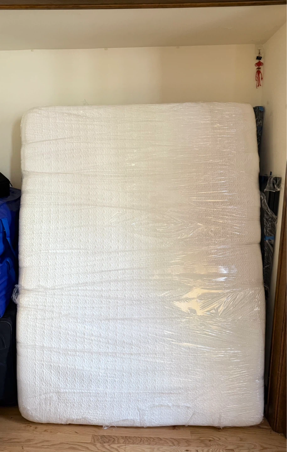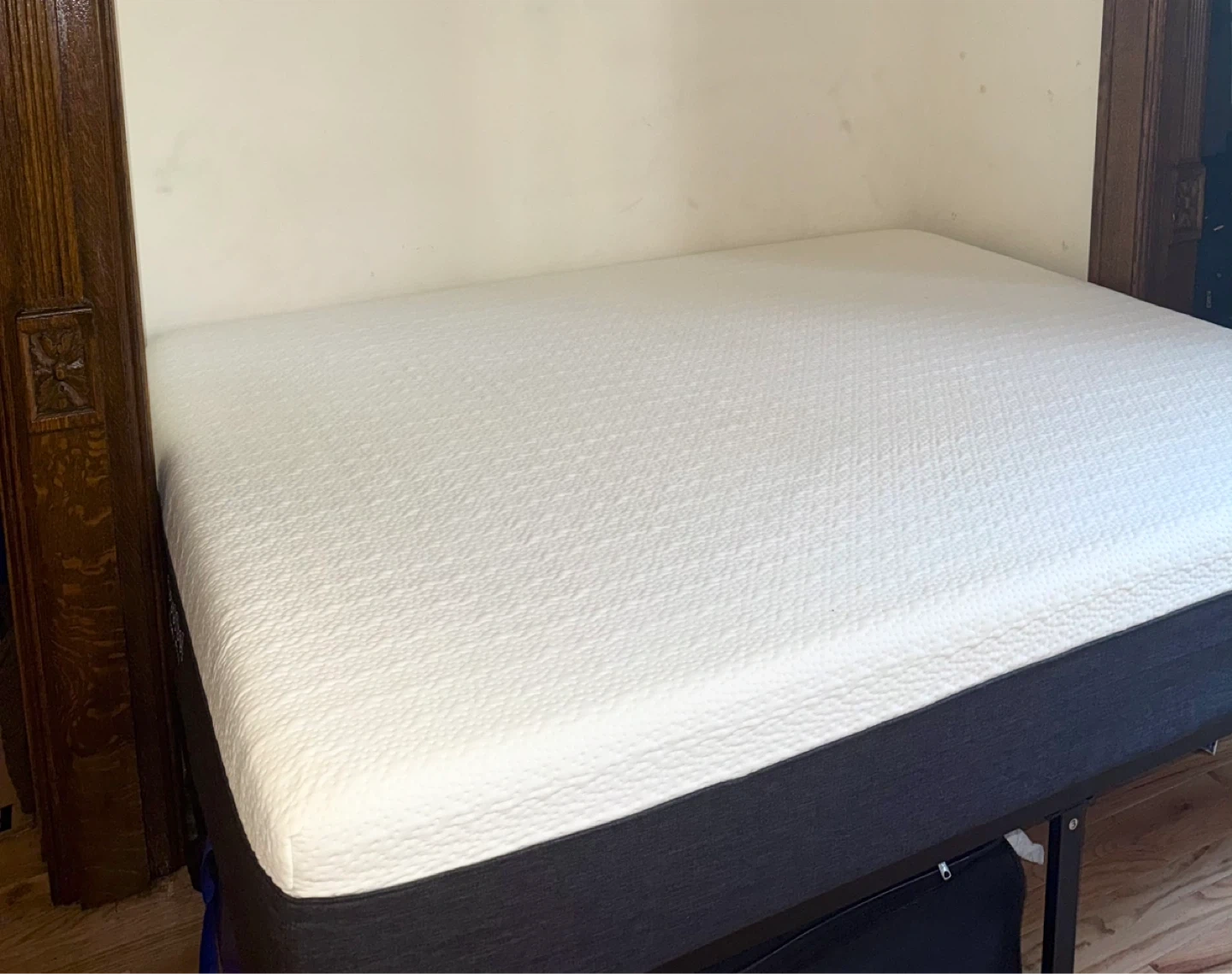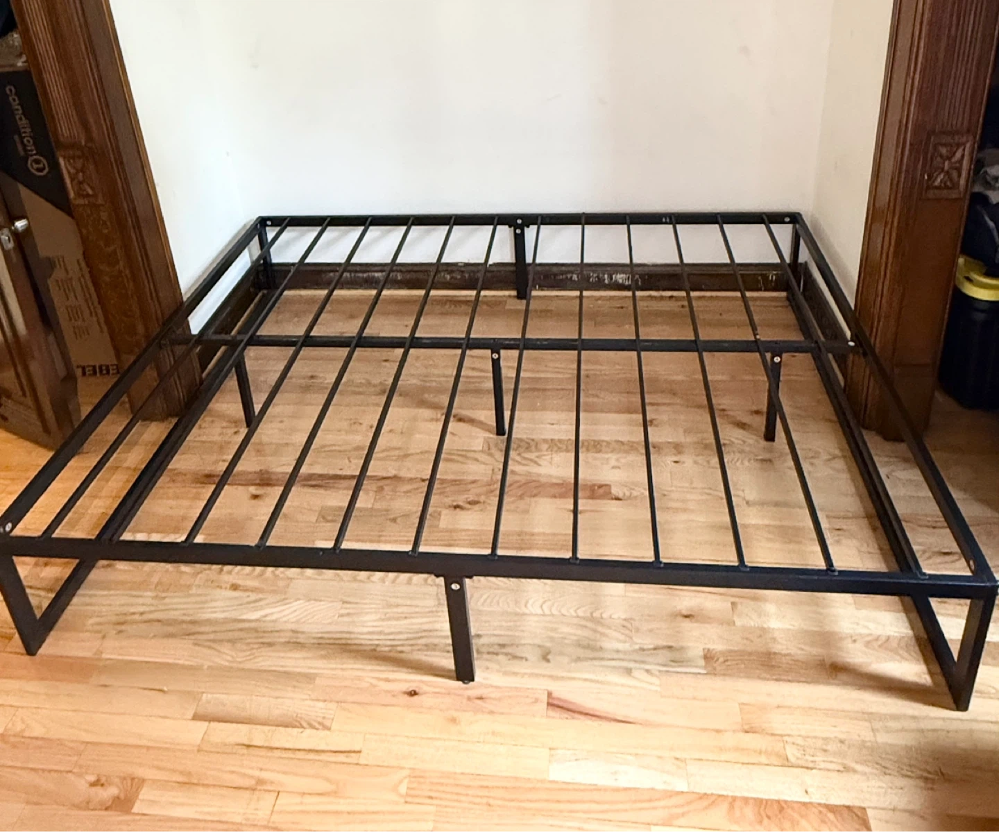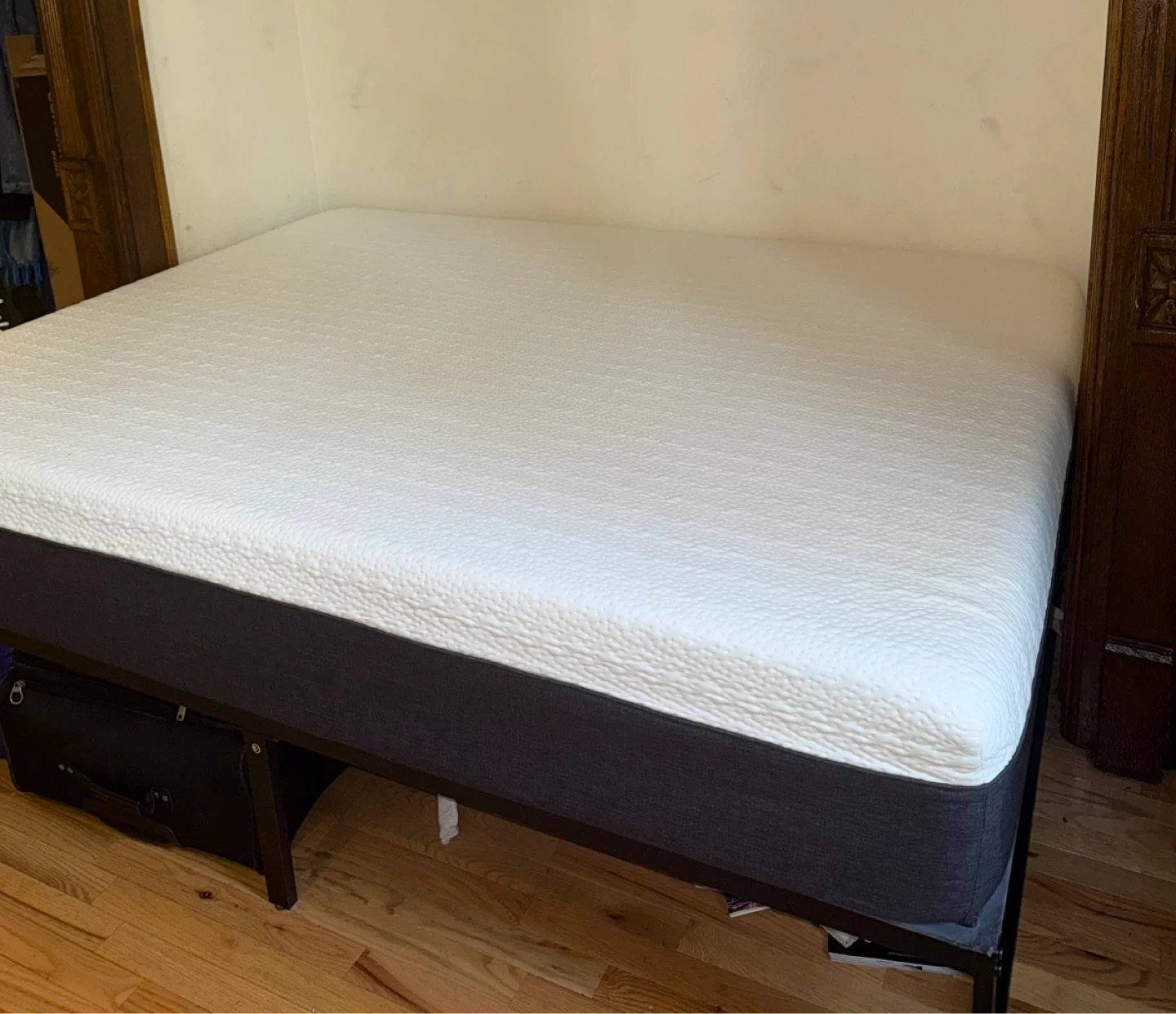 Spacious Queen 12in Gel Memory Foam Mattress + Metal bed frame. So comfy and soft with support, but I’m switching to a twin size. Mattress used for one month with waterproof mattress cover - Like New!