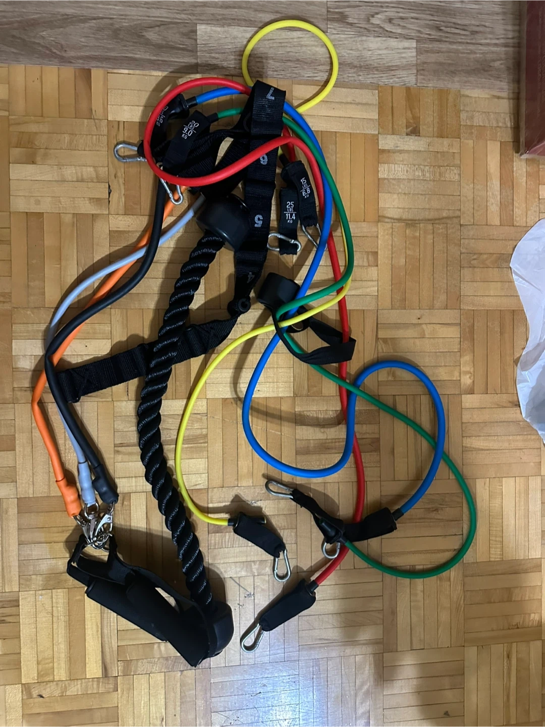 Get ready to level up your workouts with this resistance bands set! It includes multiple bands with varying resistance levels, handles, and ankle straps for a full-body workout. Perfect for home or on-the-go training