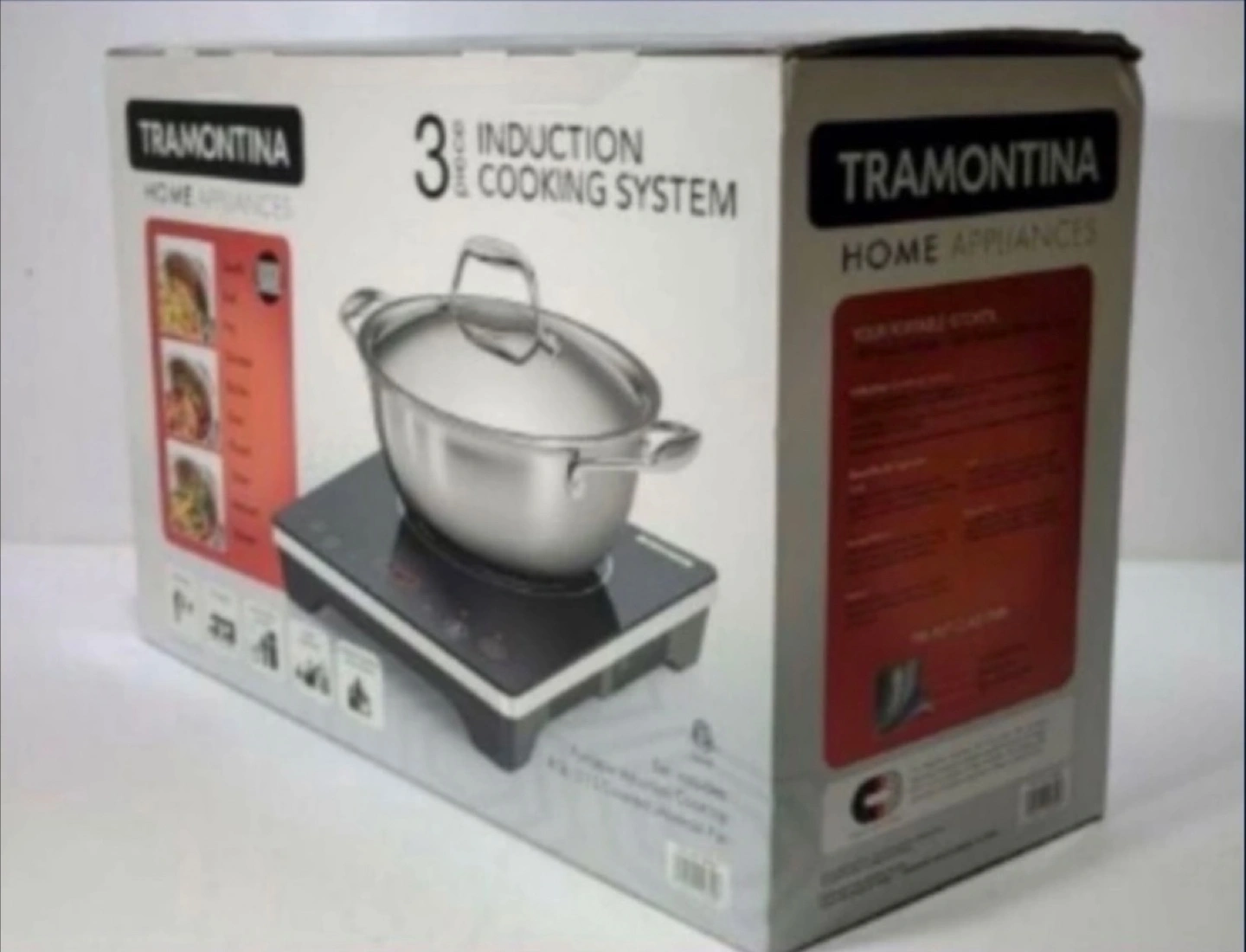 New in box. Includes induction cooktop and stainless steel pot with lid. Great for small spaces.