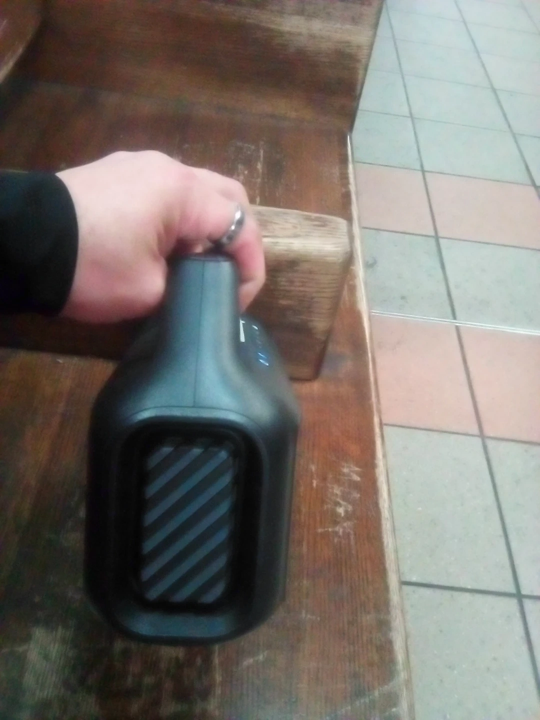 This portable Soundcore speaker offers wireless Bluetooth connectivity. It features a built-in handle for easy transport. The speaker's grille design provides a rugged look.