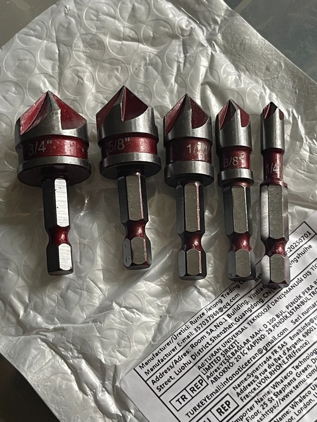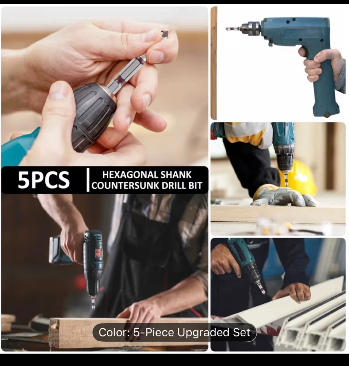 5 Piece Hexagonal Shank Countersunk Drill Bit Set