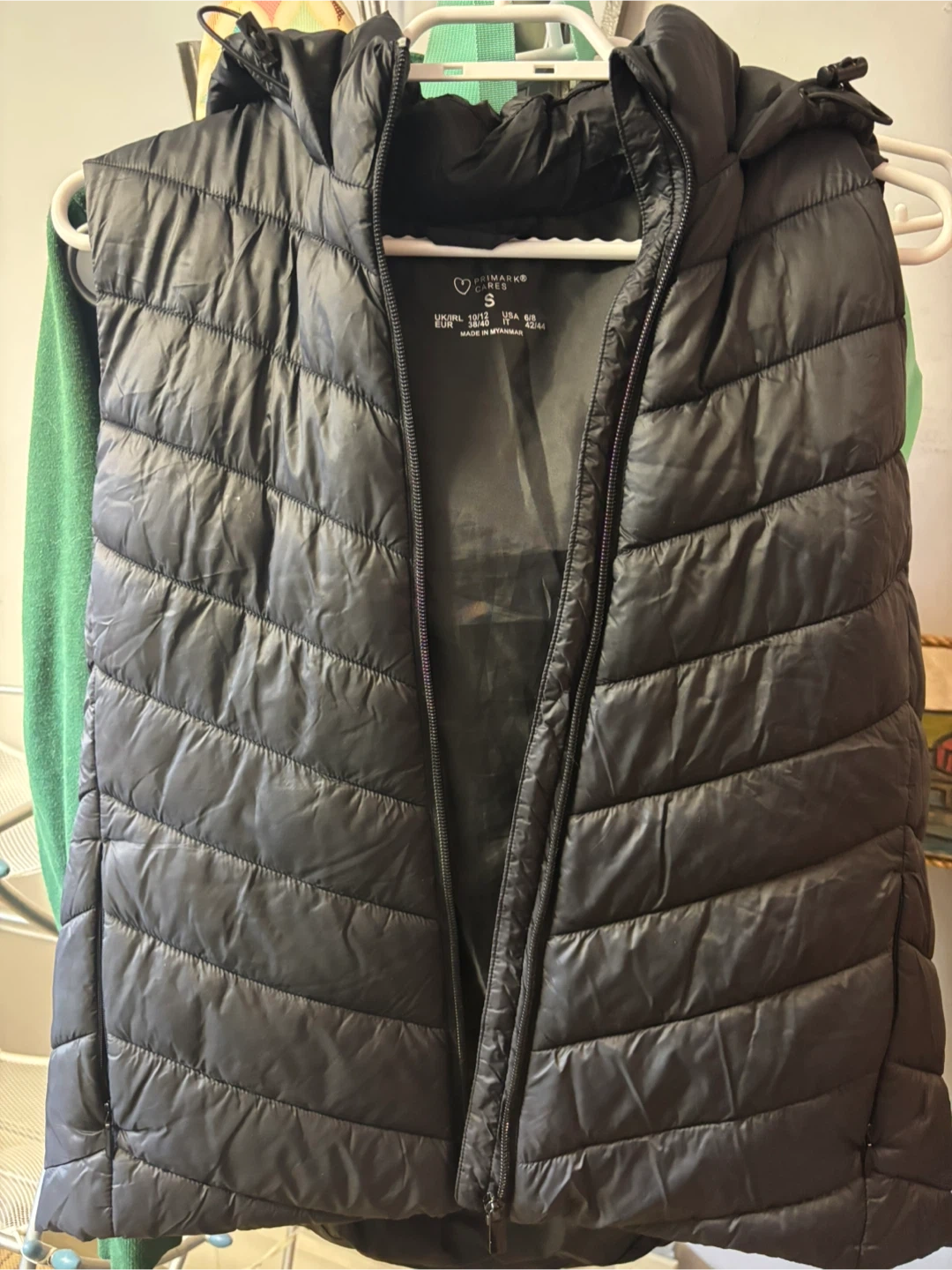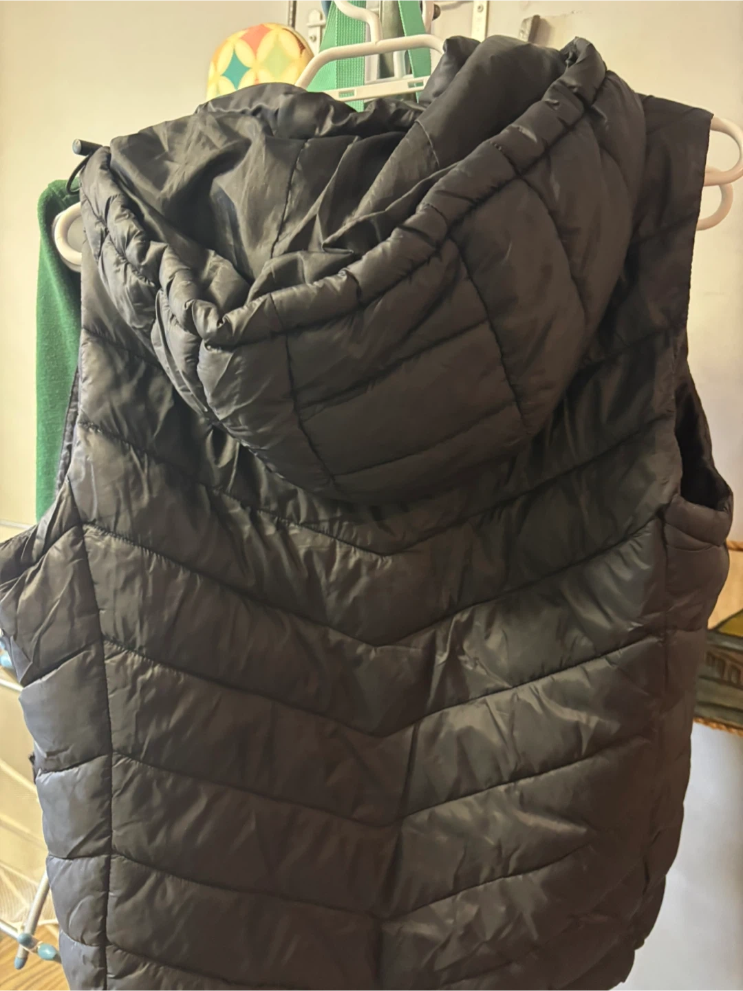 This is a black padded gilet from Primark. It's a size small and has a hood. Made in Myanmar.