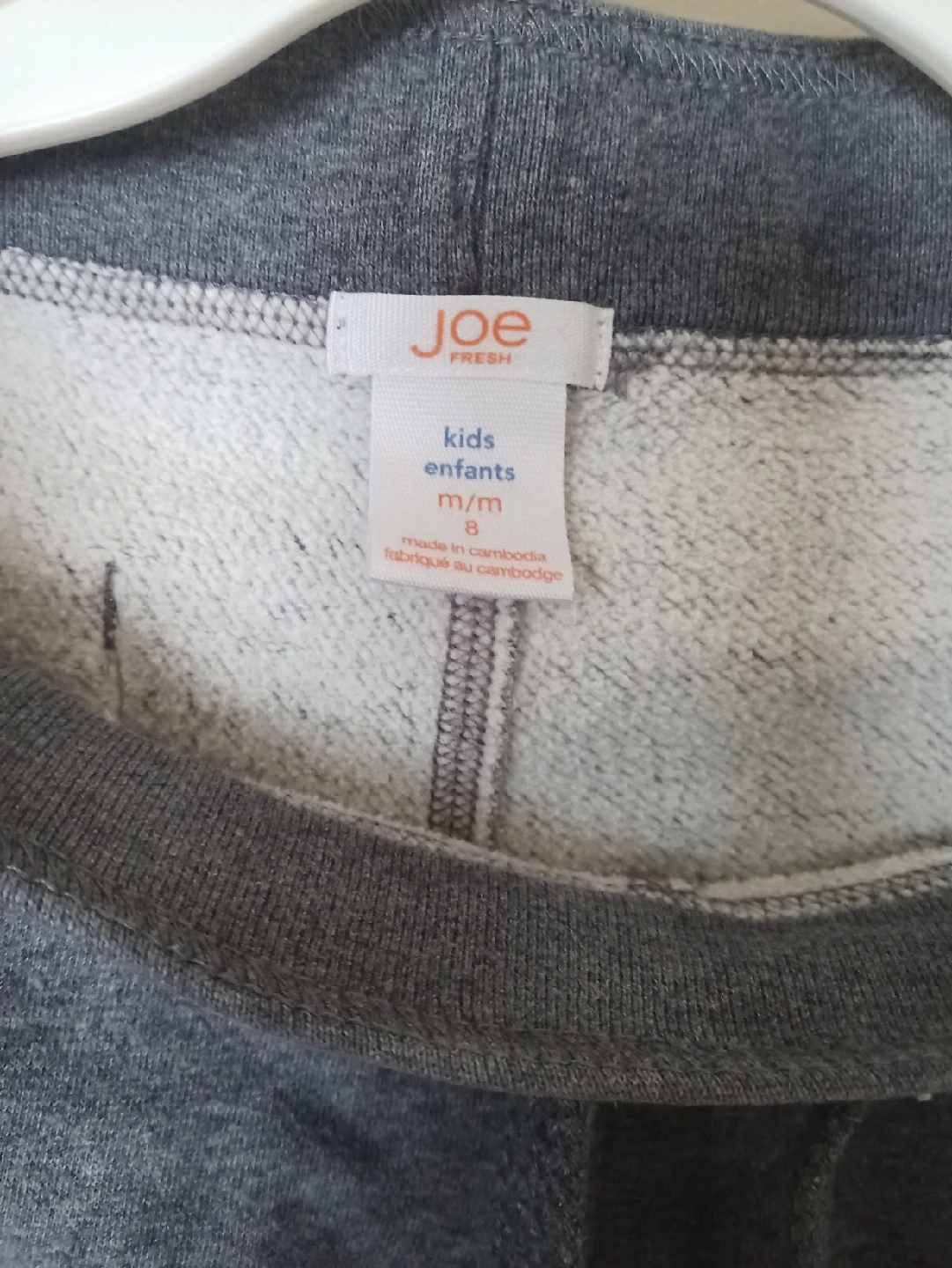 Selling a pair of Joe Fresh kids sweatpants in grey. They are size M/M, which is equivalent to size 6. These comfy sweatpants are perfect for everyday wear!