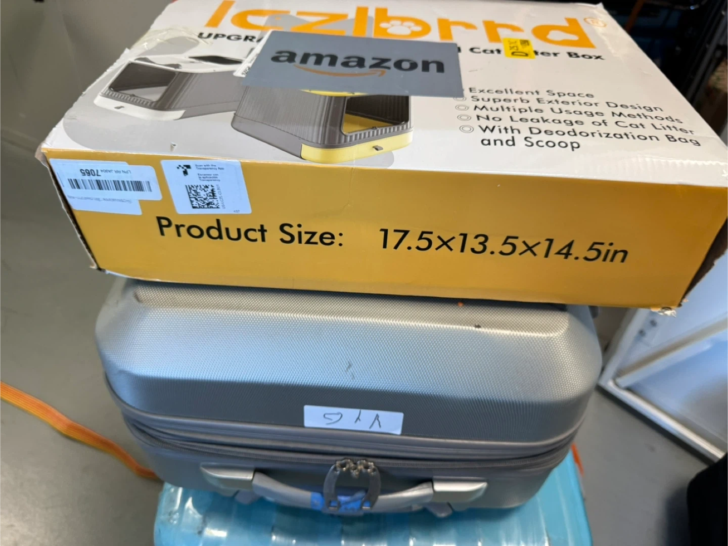 This is a Lzlbrrd Magical Cat Litter Box. It features excellent space and a superb exterior design. It has multiple usage methods, no leakage of cat litter, and includes a deodorization bag and scoop. Product size: 17.5x13.5x14.5in.