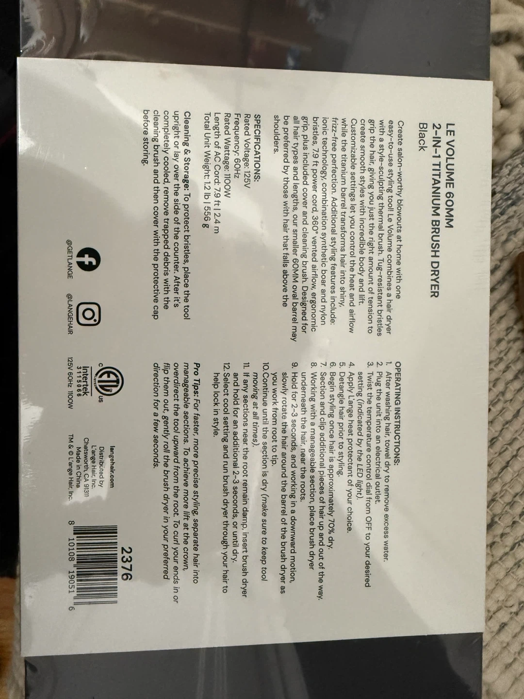 This is the Lange Le Volume 60mm 2-in-1 Titanium Brush Dryer. It's designed for salon-style blowouts at home. Features ionic technology and 3 heat settings for customized styling.