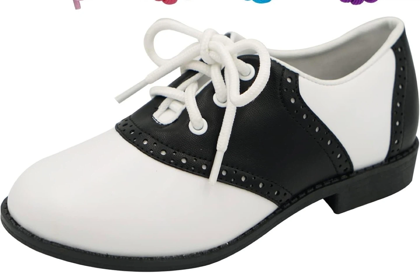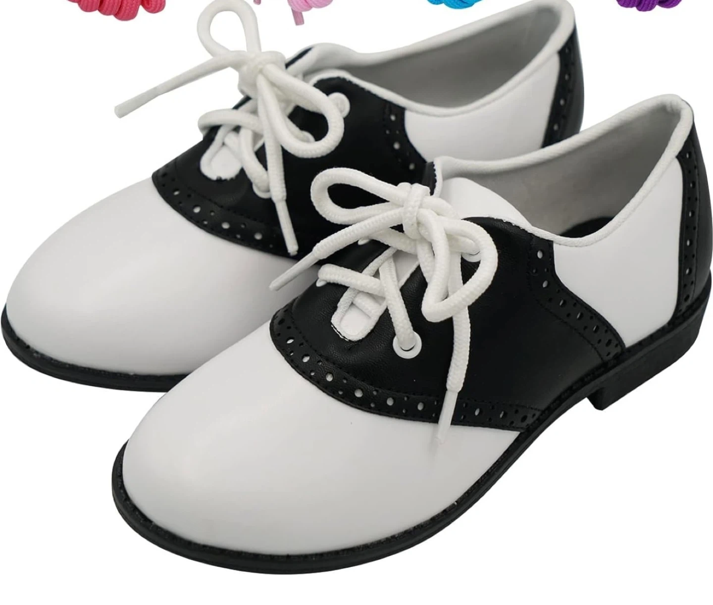Classic saddle shoes in black and white. These shoes feature a faux leather construction with lace-up closure for a secure fit. A timeless style for any outfit! Size -3