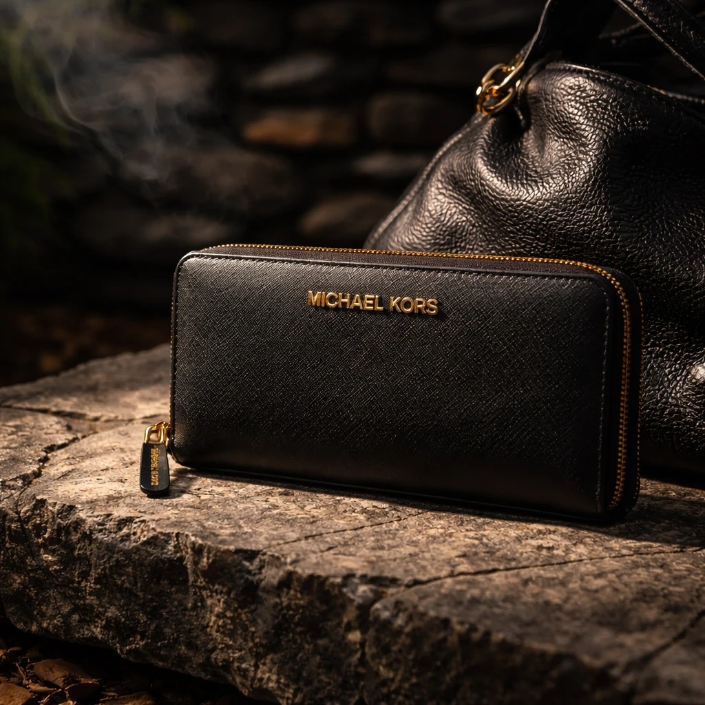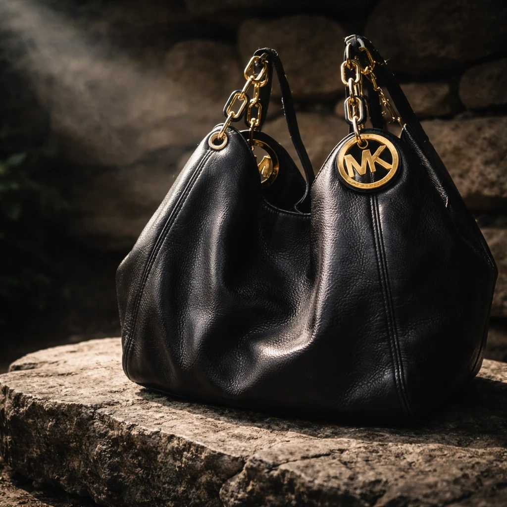 Michael Kors Black Leather Hobo Handbag & Wallet Set